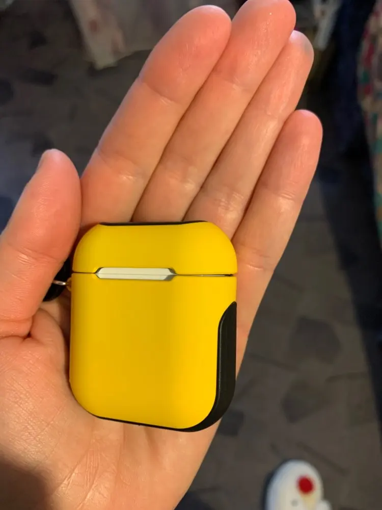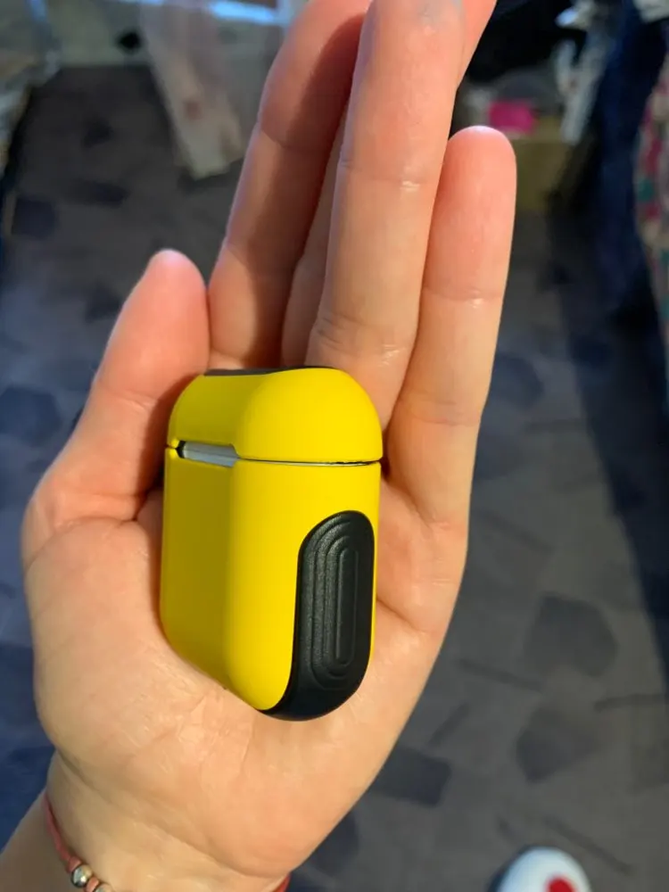 Товар не самого лучшего качества. Кейс нормально не приклеен, крышка до конца не прижимается к корпусу, положение кнопки не совпадает с таковой на самих наушниках, зачем-то есть проушина под карабин, но самого карабина нет. На ощупь приятный и, конечно, удобнее доставать из кармана, чем эти дурацкие силиконовые чехлы, за это два балла и прибавил.