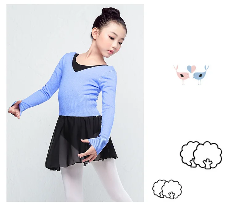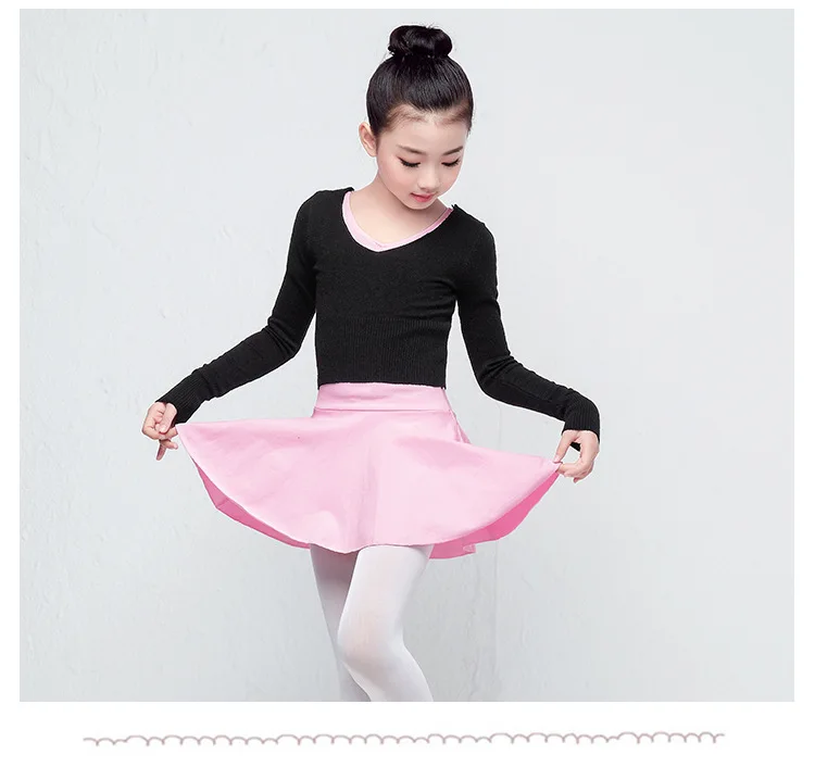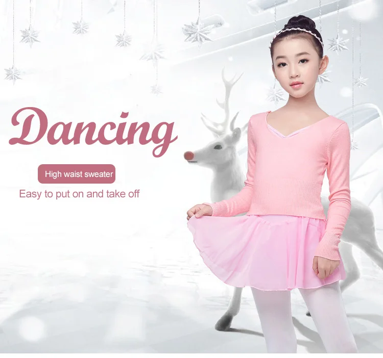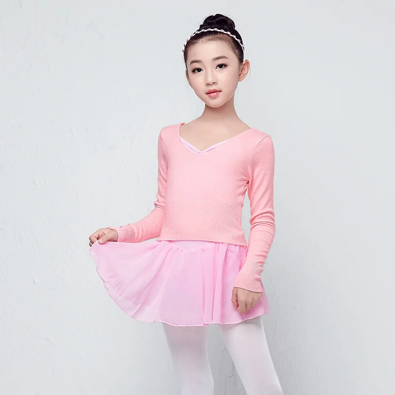 Девочки балетные костюмы хлопковый Детский свитер с высокой талией и V-образным вырезом, розовый костюм с пуловером балетная одежда с длинными рукавами