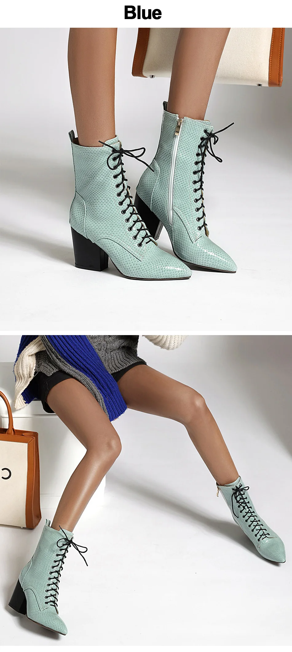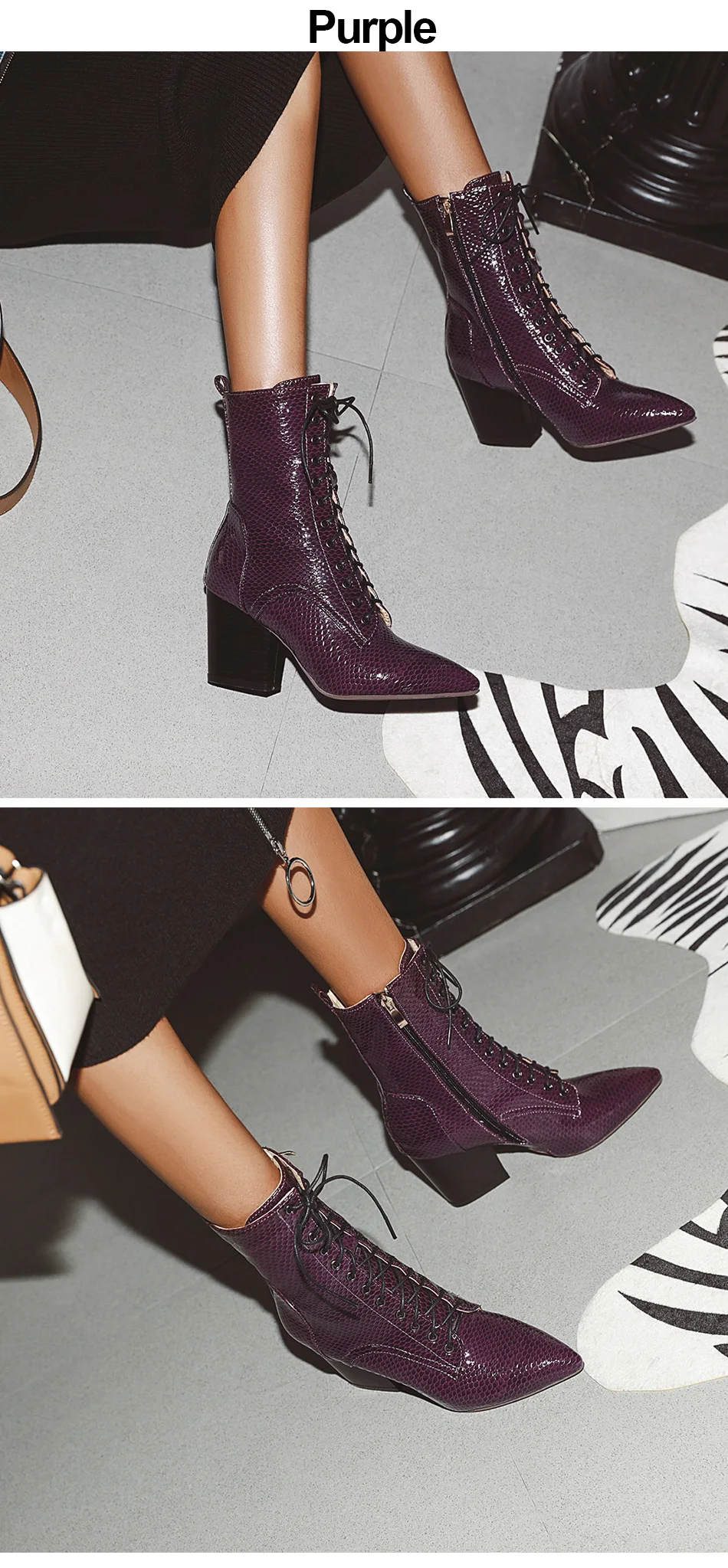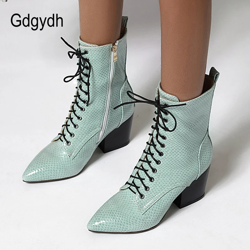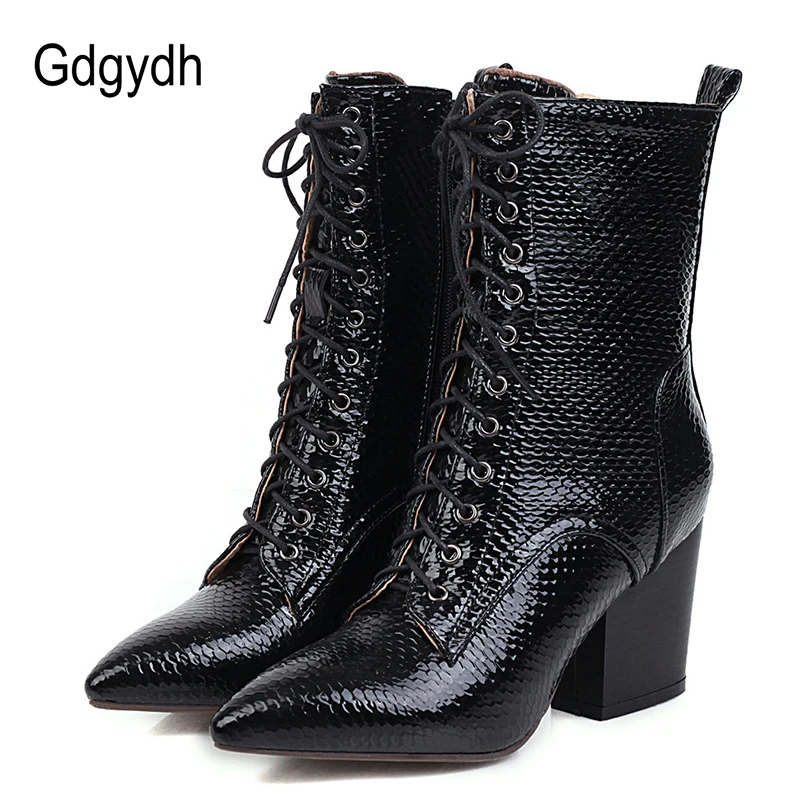 Женские ботинки со змеиным узором Gdgydh, черные, обувь с острым носком и ремешком на щиколотке с плюшевой подкладкой, короткие сапоги на молнии для осени и зимы,