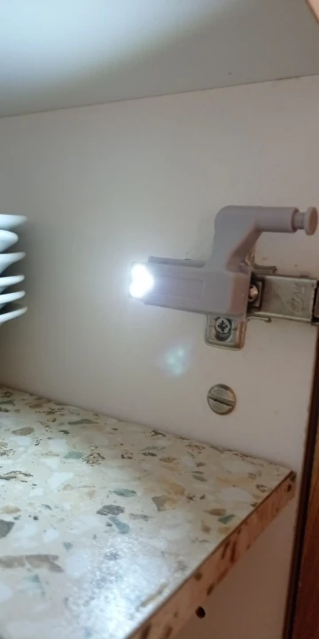 Работает. Как я свет, но нет необходимости, там, где петли, у меня есть его прямо в боковой стене вкручивается. Также складывается. Батареи необходимо заказывать отдельно, но также в описании