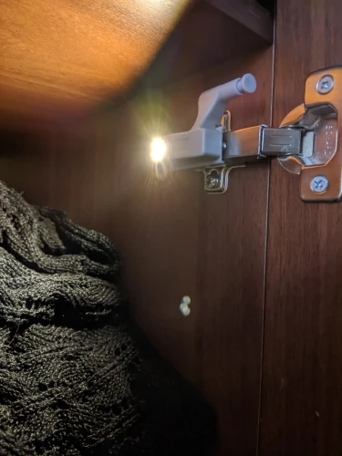 Подсветка устанавливается в шкафы просто. Свет даёт достаточный, чтобы не включать в темноте дополнительный свет. Совет тем, кто хочет купить подсветку в шкафы, надо сразу же купить пальчиковые батарейки типа 23A. Другие не подойдут.