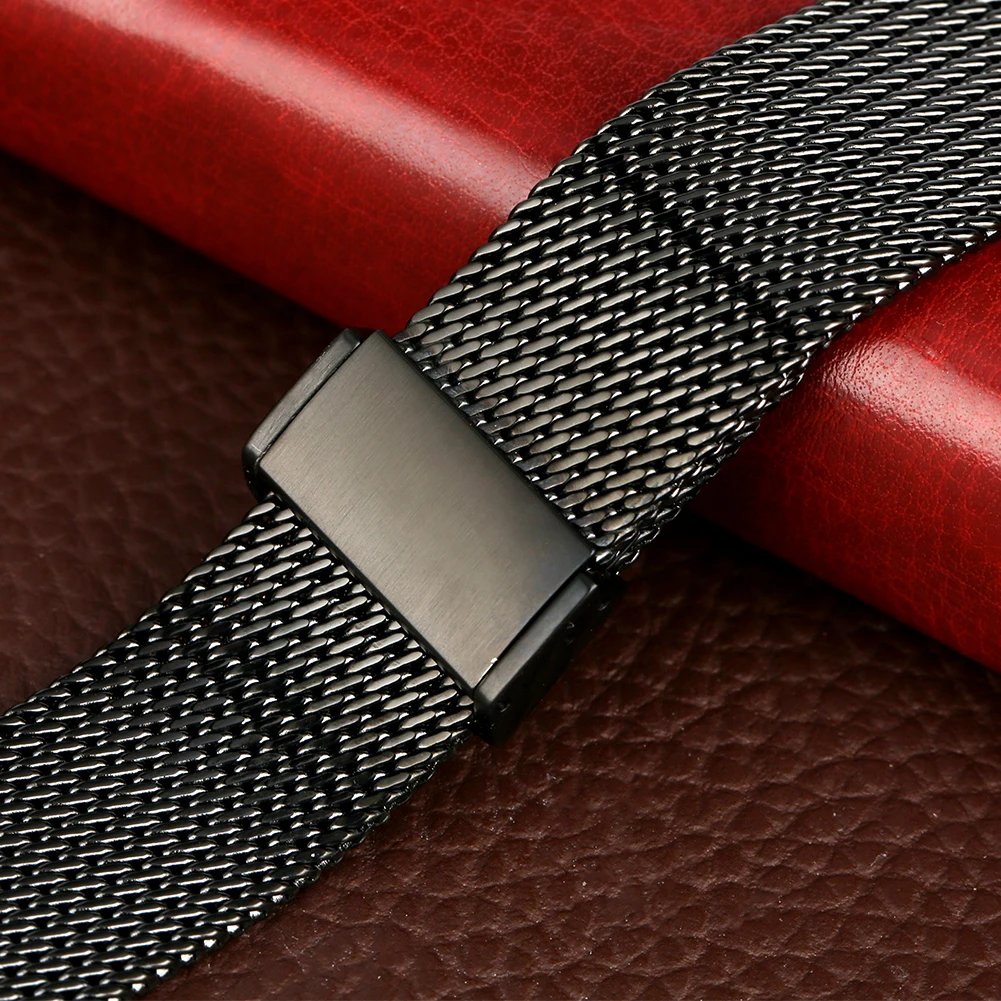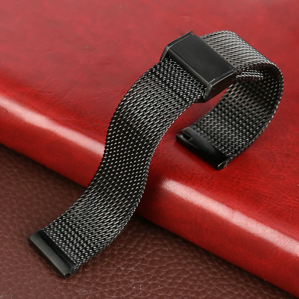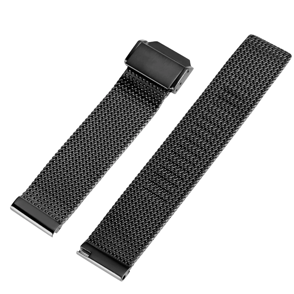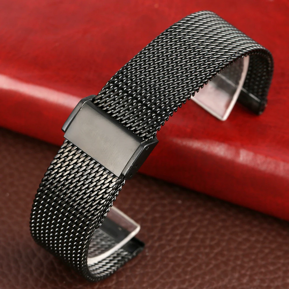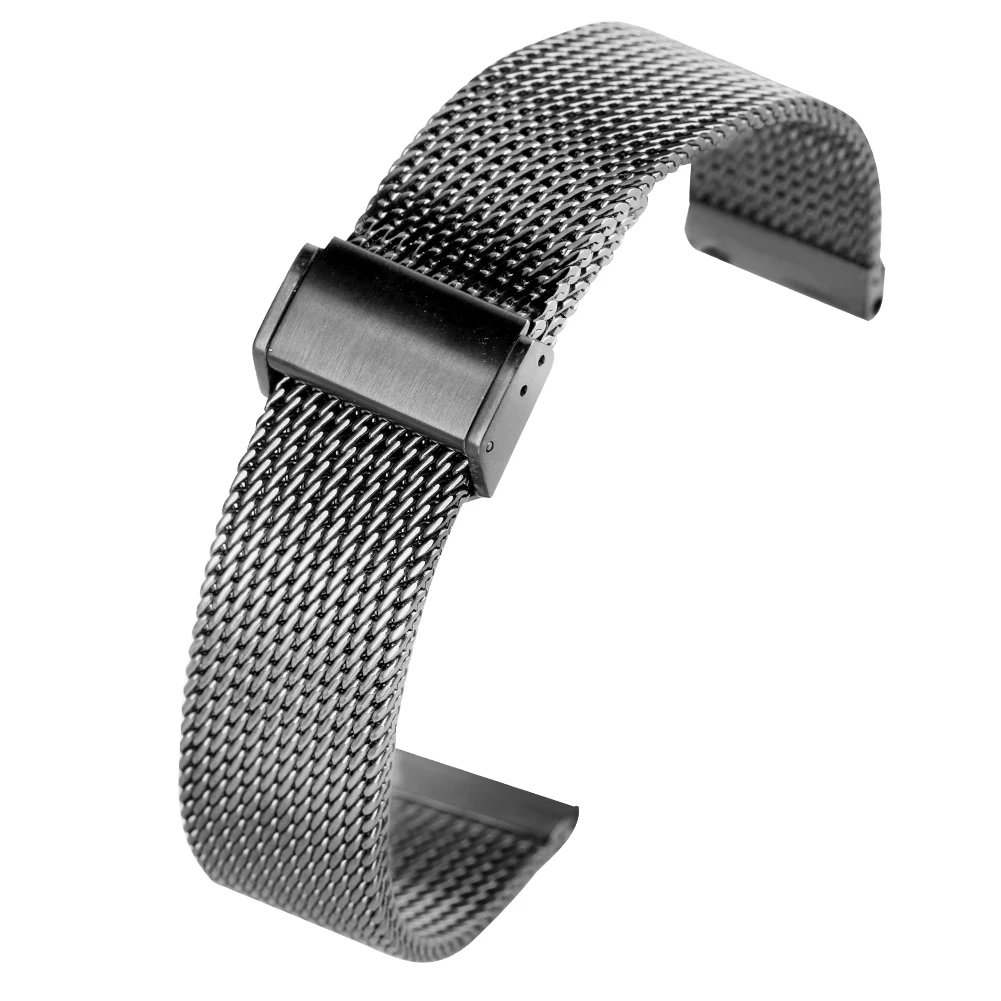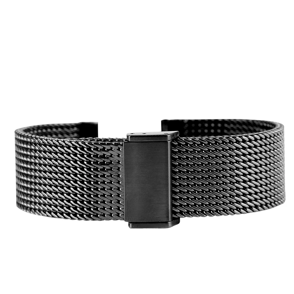 Ремешок сменный для часов Cinturino Orologio, черный сетчатый Браслет из нержавеющей стали с пряжкой-крючком для наручных часов, 18 мм 20 мм 22 мм
