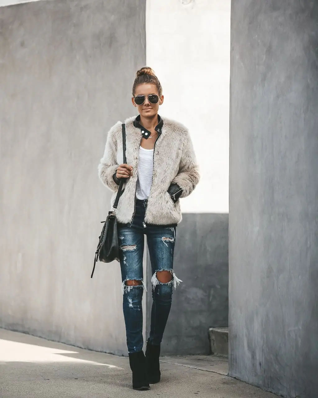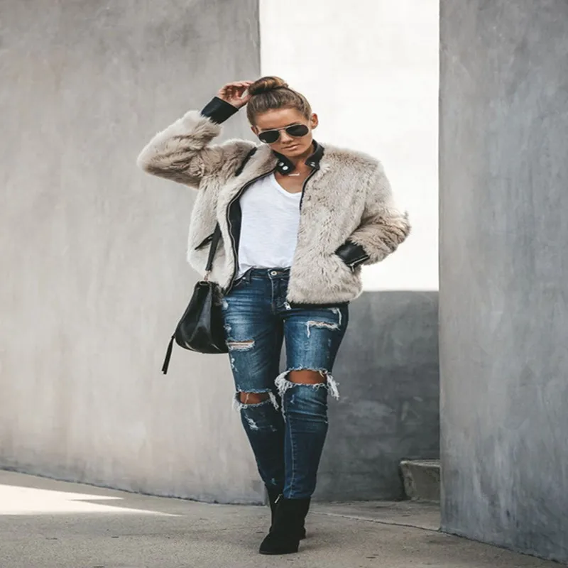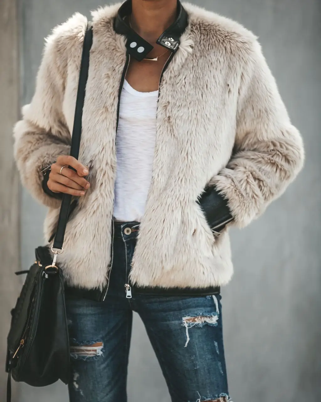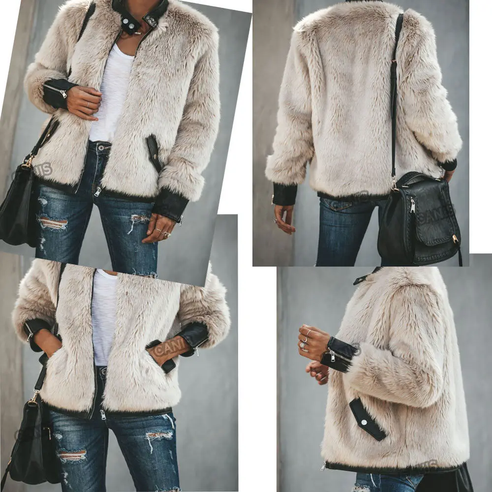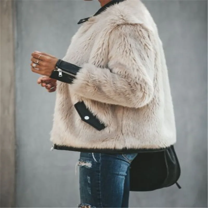 Женская куртка из искусственной кожи, с карманами, на молнии