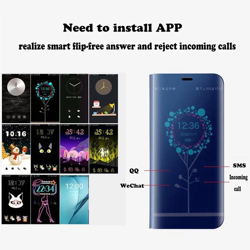 (2) . Чехол с откидной крышкой Smart mirror leathe, быстрый просмотр SMS, звонков, даты, времени и т. д.