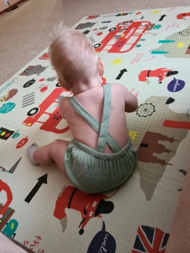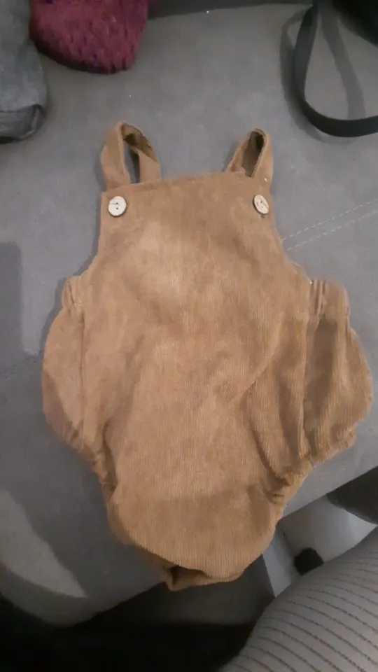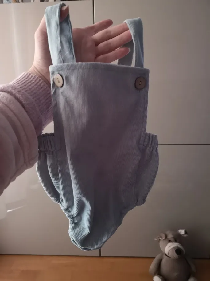 О, отлично. Я купил размер 3 месяца, и он имеет высоту 38 см (включая подтяжки) и ширину 21 см. На фото кажется более четким, чем на самом деле. Очень хорошо