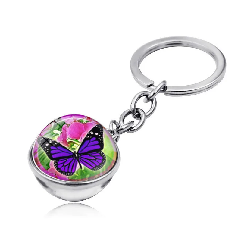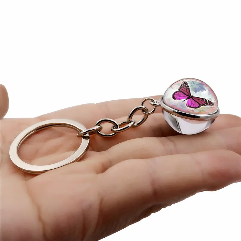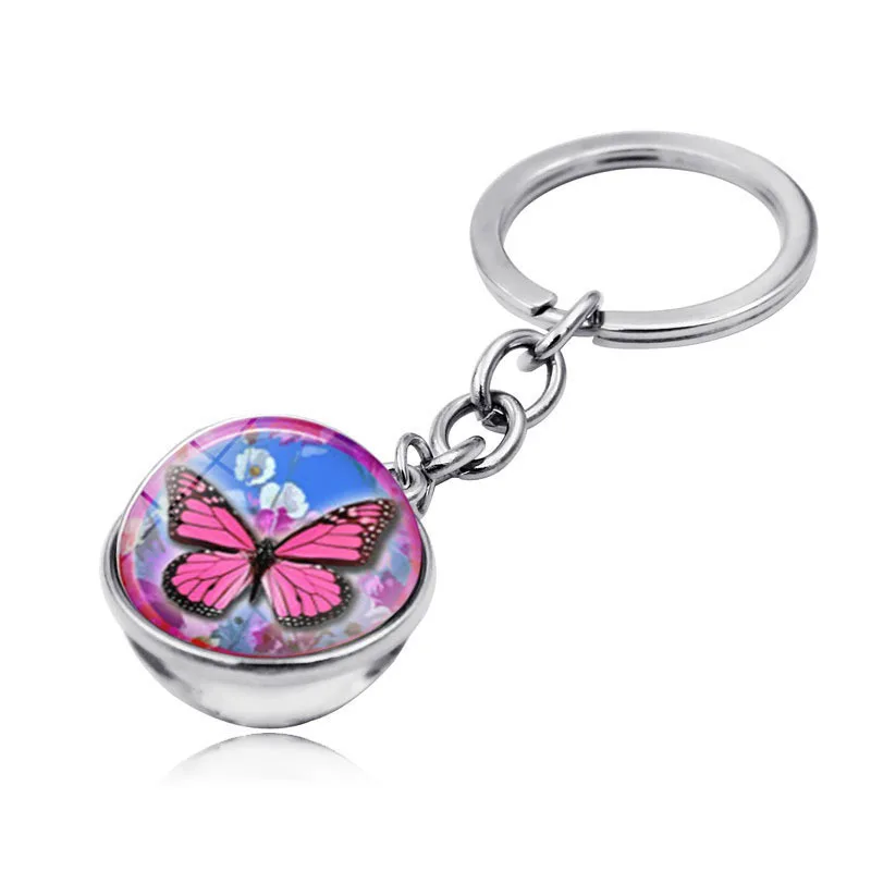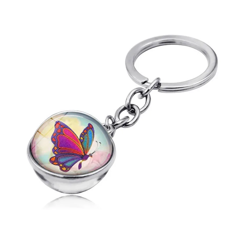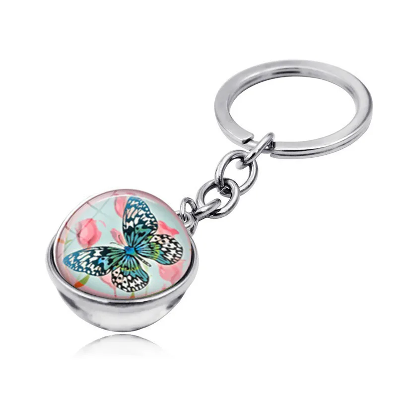 Винтажный брелок для ключей ювелирные изделия со стеклом кабошон в форме бабочки двойной стеклянный шар автомобильный брелок для мужчин женщин подарок
