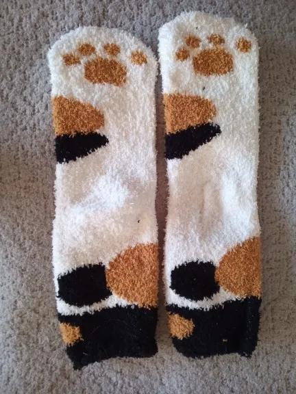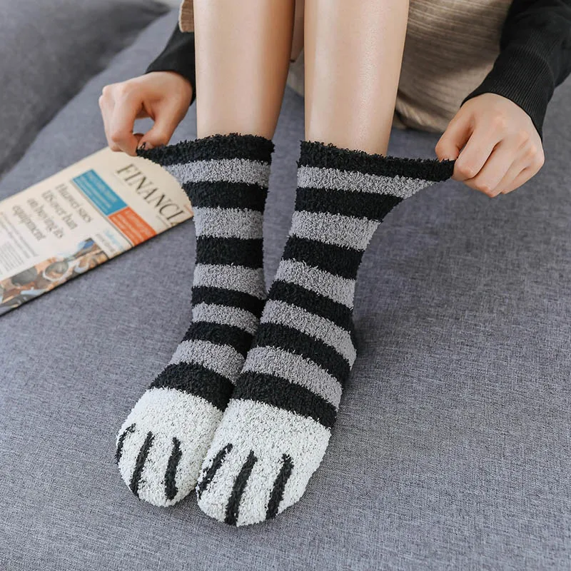 Пушистые зимние теплые носки для пола для женщин носки для сна в виде кошачьей Лапы Для девочек милые забавные носки для дома толстые носки