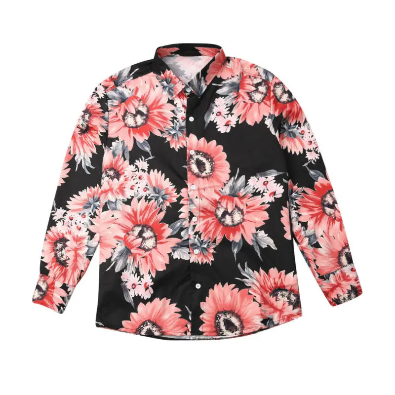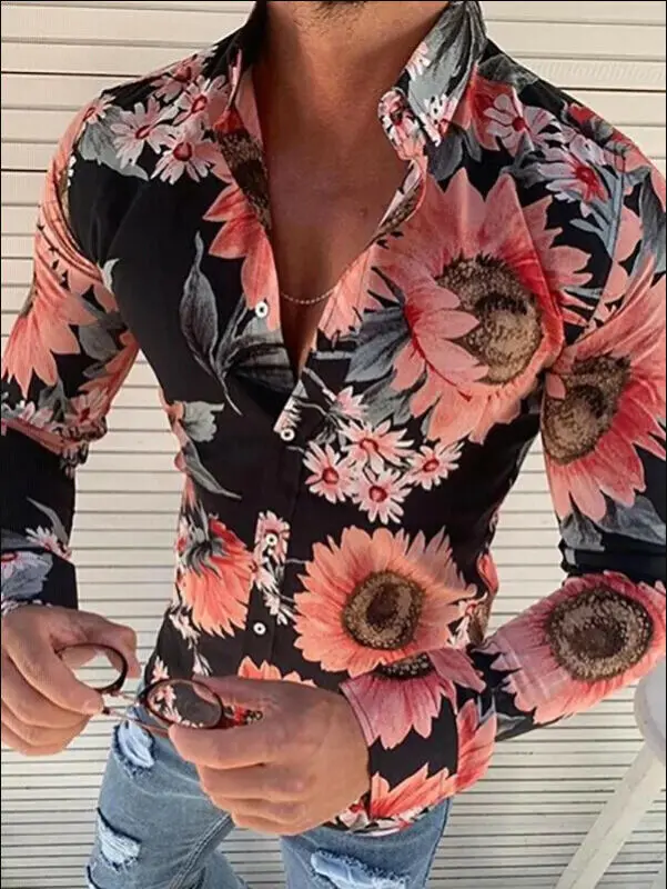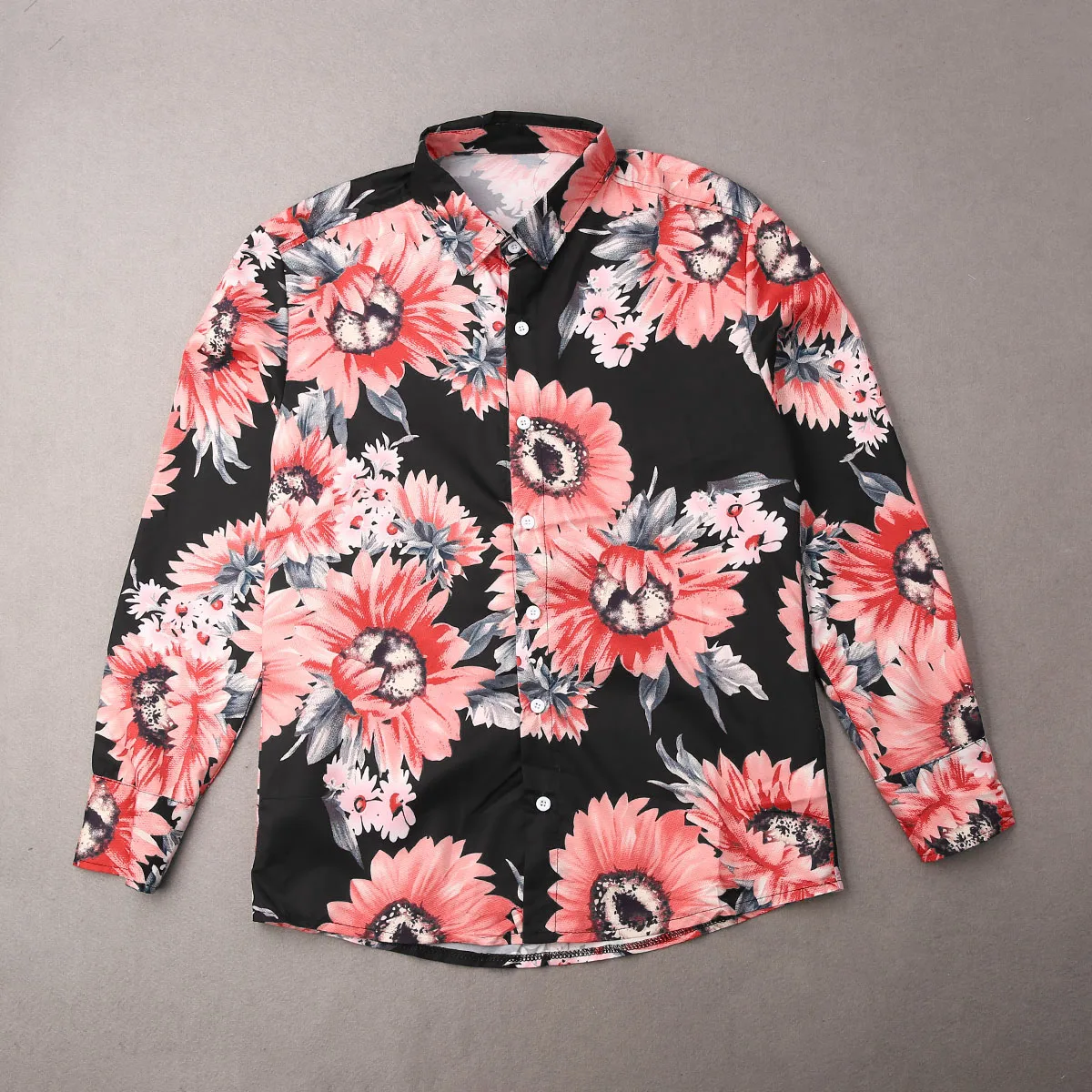 Мужская рубашка, осенняя пляжная гавайская рубашка с цветочным прин...