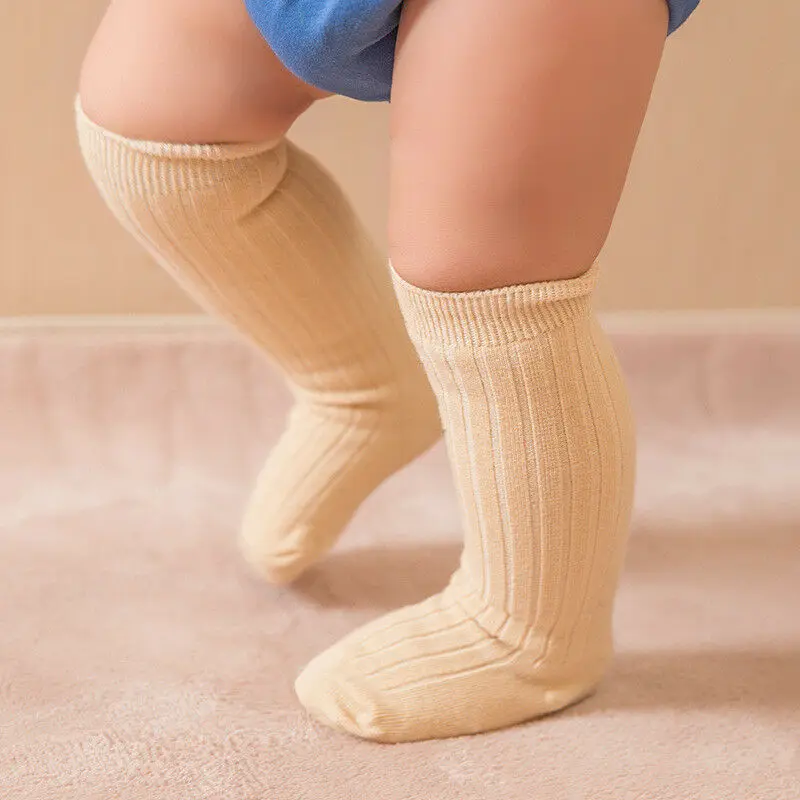 Гольфы вязаные однотонные до колена для мальчиков и девочек, От 0 до 3 лет, одежда для детей и малышей