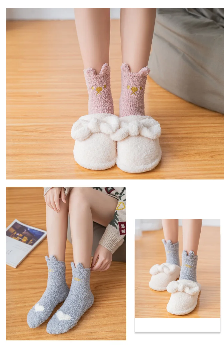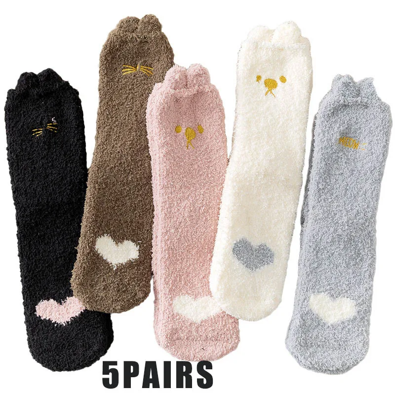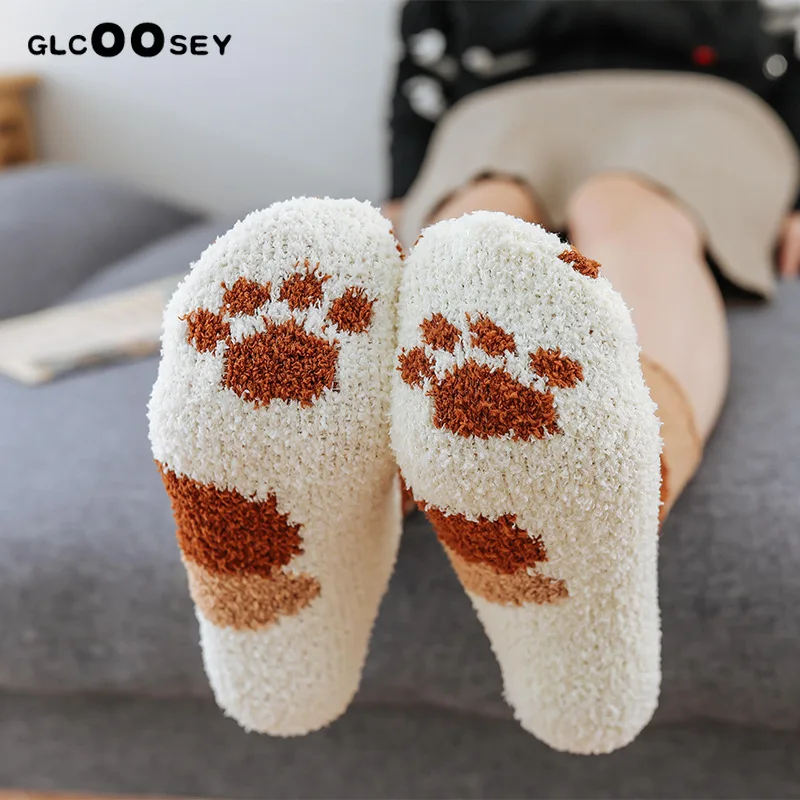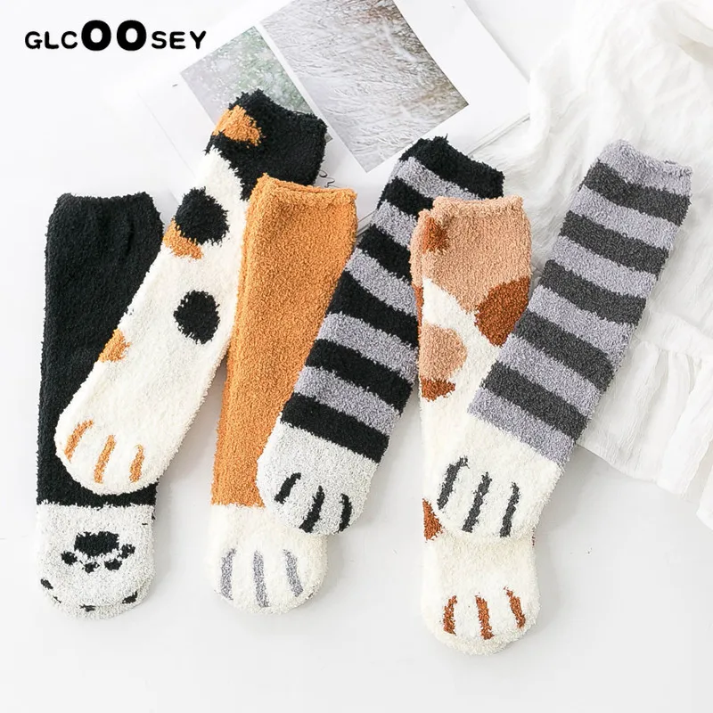 6 парупак. зимняя теплая обувь с принтом кошачий коготь; 8 Стиль для женщин и девочек Спальные Носки-тапочки для дома с толстыми носками