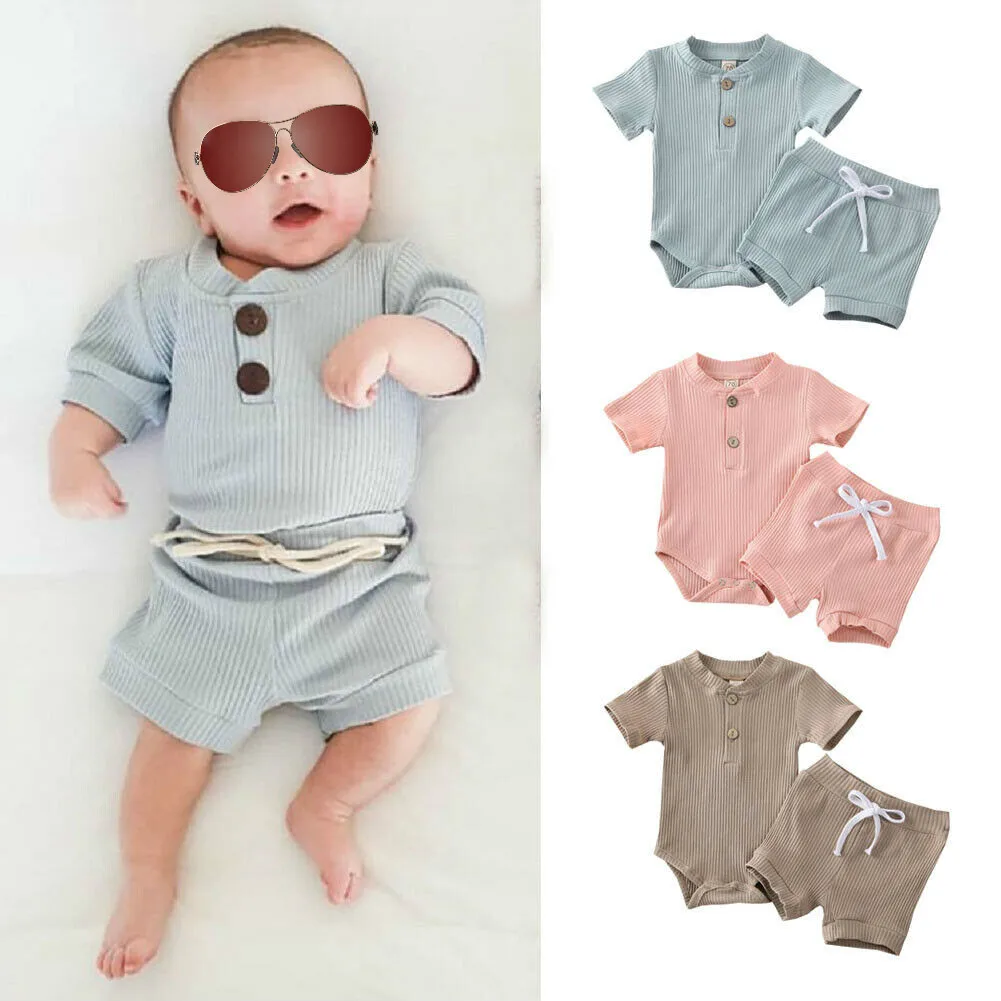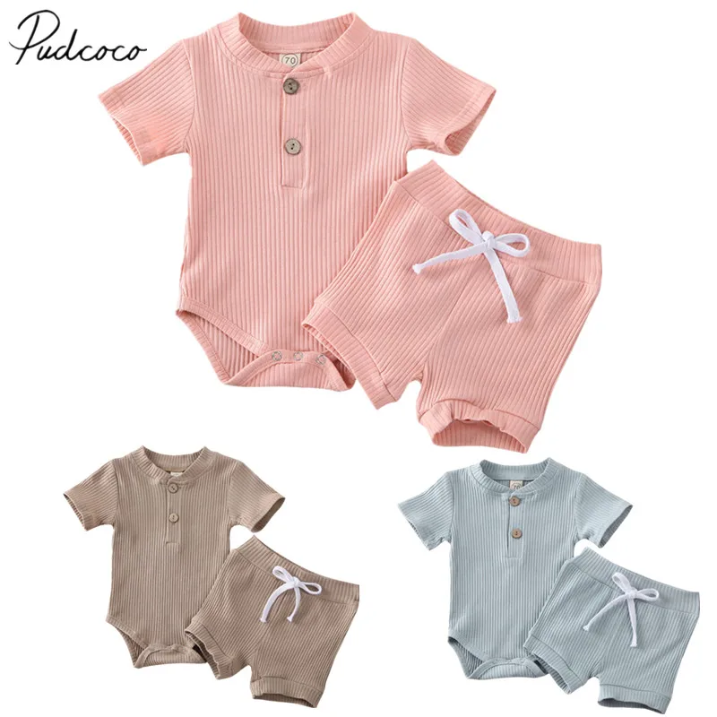 2020 Детская летняя одежда, Одежда для новорожденных, для маленьких мальчиков и девочек, боди с коротким рукавом, шорты, однотонный комплект из 2 предметов