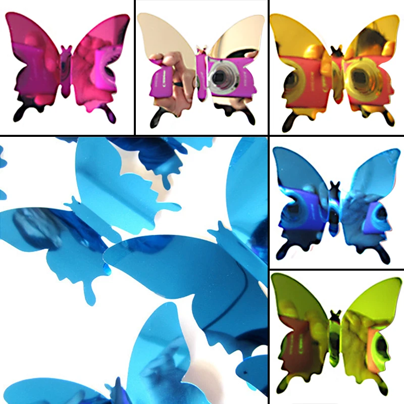 12 шт., 3D стереоскопические наклейки на стену в виде бабочки