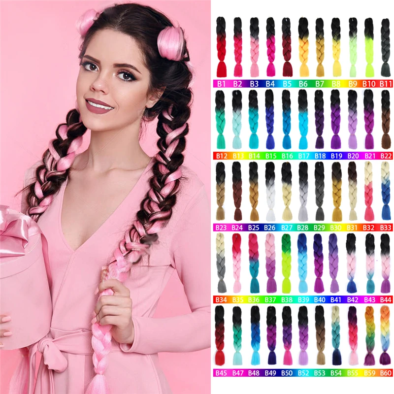 Синтетические плетеные волосы Джамбо, 100 г, 24 дюйма, волосы для наращивания Омбре, волосы розового, зеленого, серого цвета, африканские волосы для кос