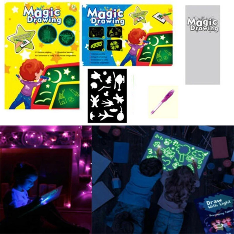 А3 А4 А5 Рисование с светильник в темноте детская забавная игрушка доска для рисования набор английский язык 2019 игрушка для мальчиков и девочек головоломка рисунок Волшебный луч