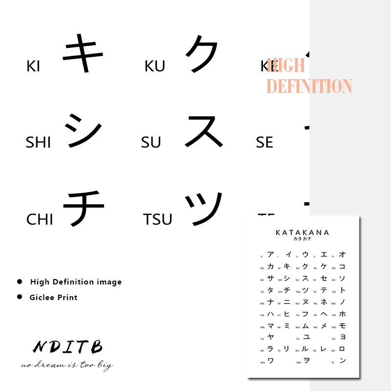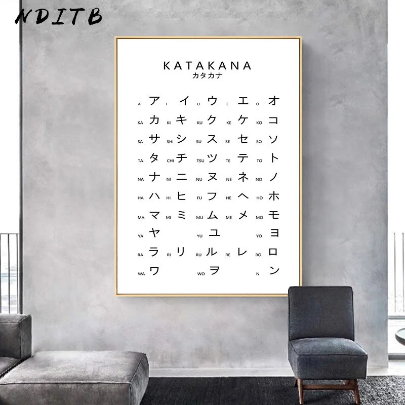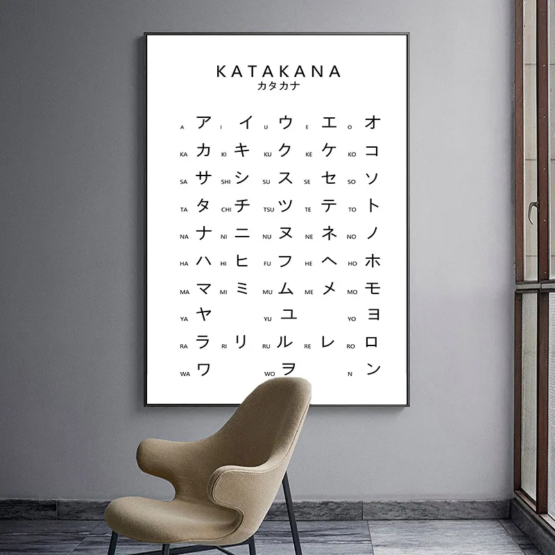 Диаграмма Катакана, Япония, плакат с алфавитом, черно-белая настенная живопись, печать на холсте, Студенческая образовательная картина, современное оформление помещения