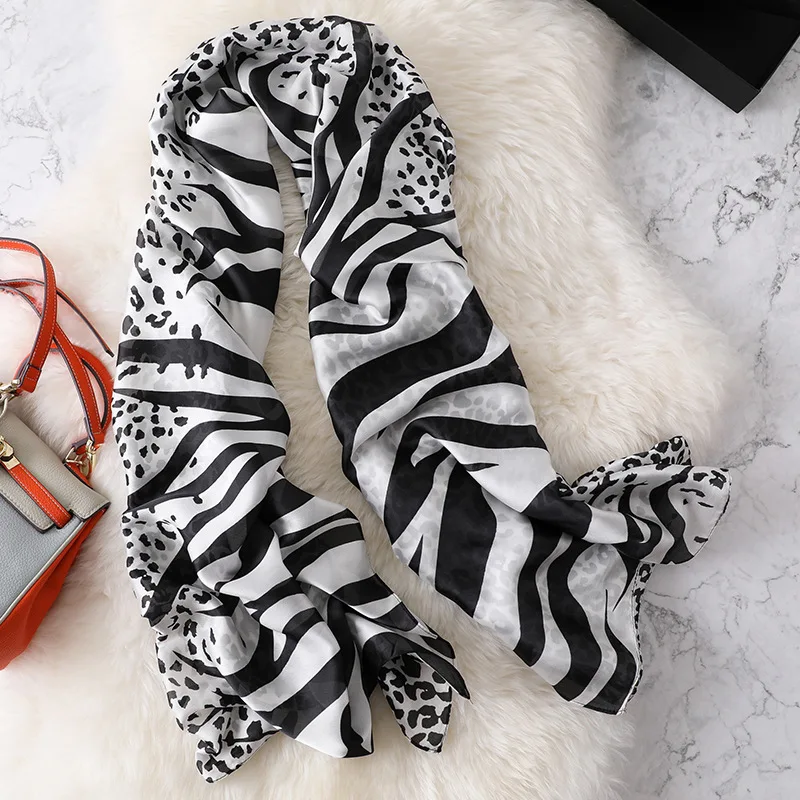 2021 г., милые животные, узор зебры леопарда, шелковый шарф, женски...