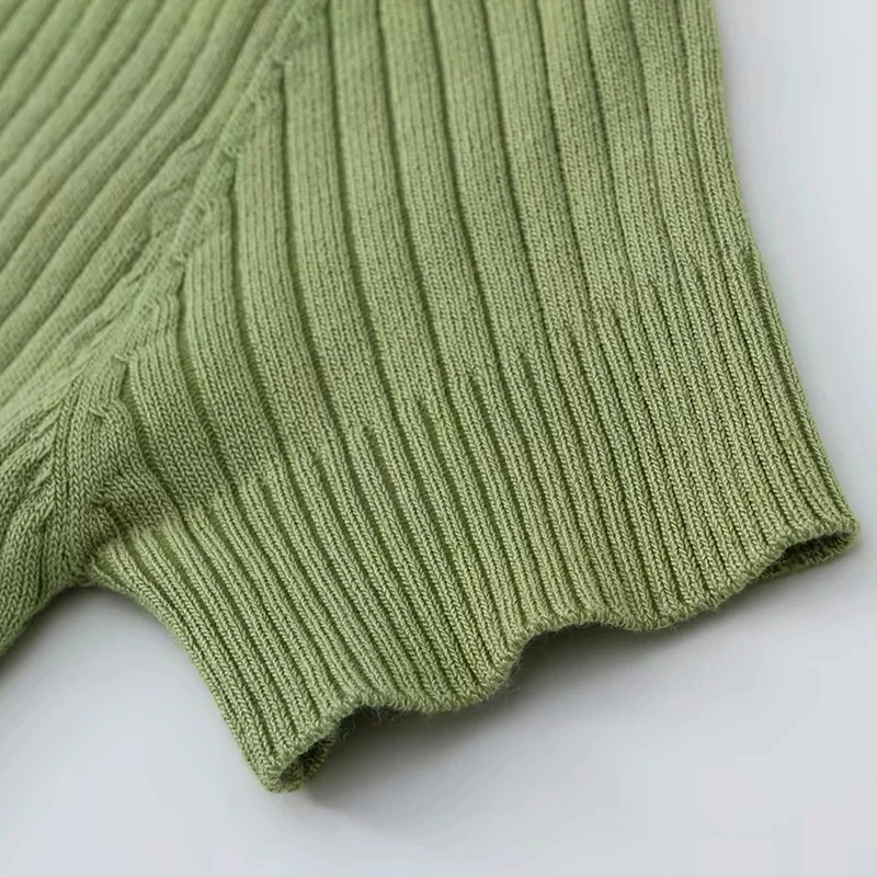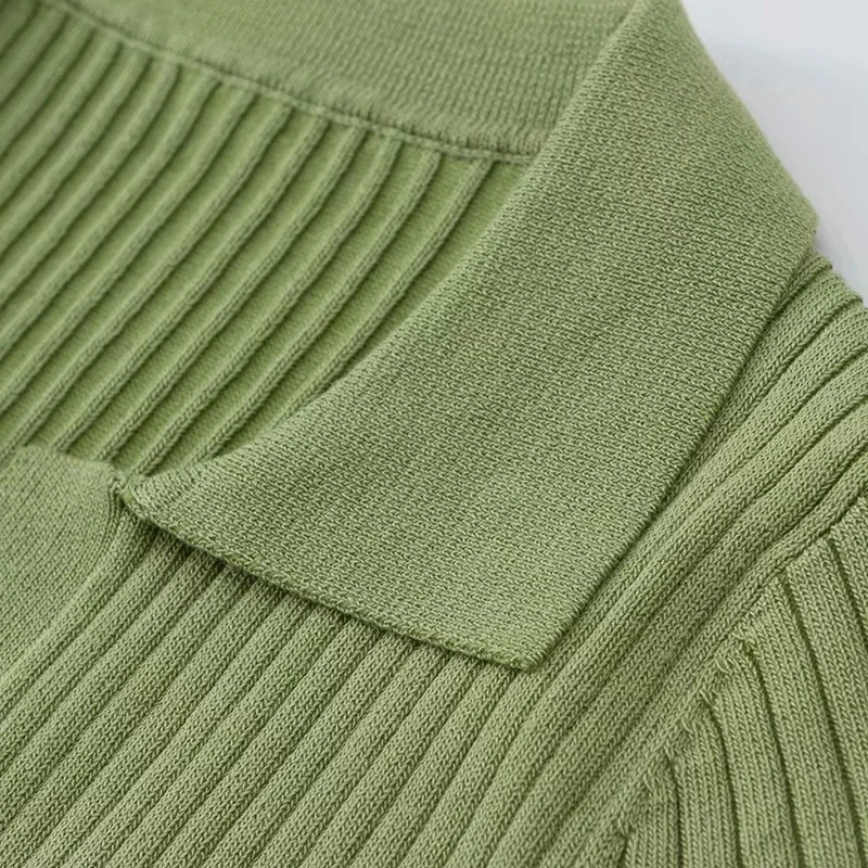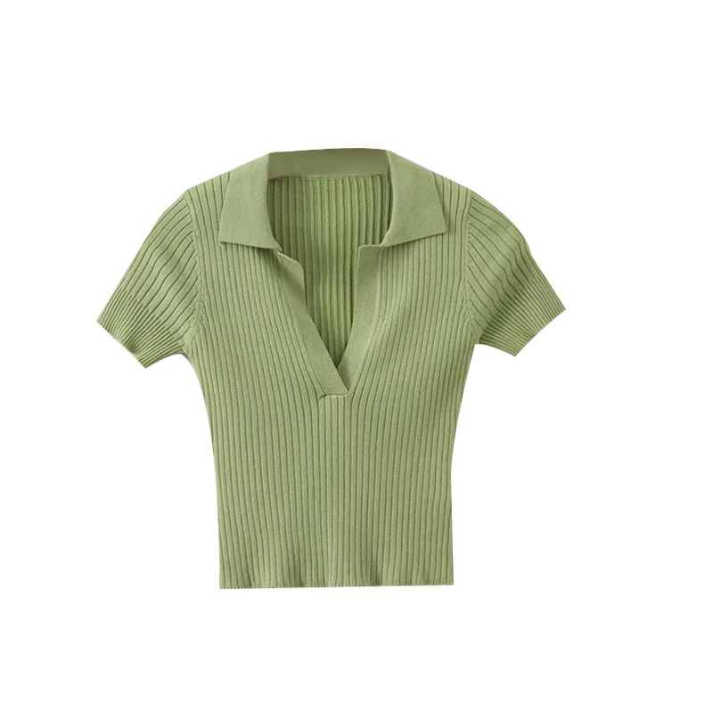 Женская трикотажная футболка-поло в винтажном стиле, зеленая и бела...