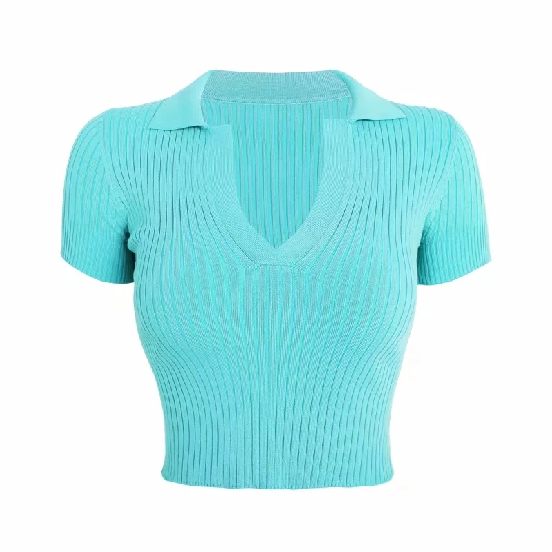 Кроп-Топ женский в рубчик, с коротким рукавом и V-образным вырезом,...