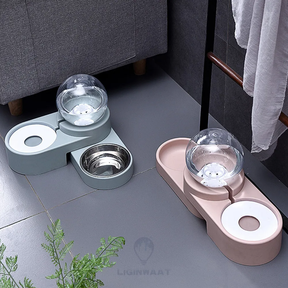 2 в 1 автоматический диспенсер для воды с двойным использованием для питомца собаки кошки из нержавеющей стали миска для еды для собаки кошки контейнер для бутылки для воды