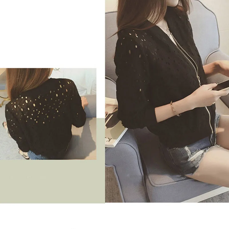 Новая модная женская куртка-бомбер с длинным рукавом, кружевная Солнцезащитная рубашка, короткая летняя тонкая куртка, Повседневная бейсбольная куртка SCI88
