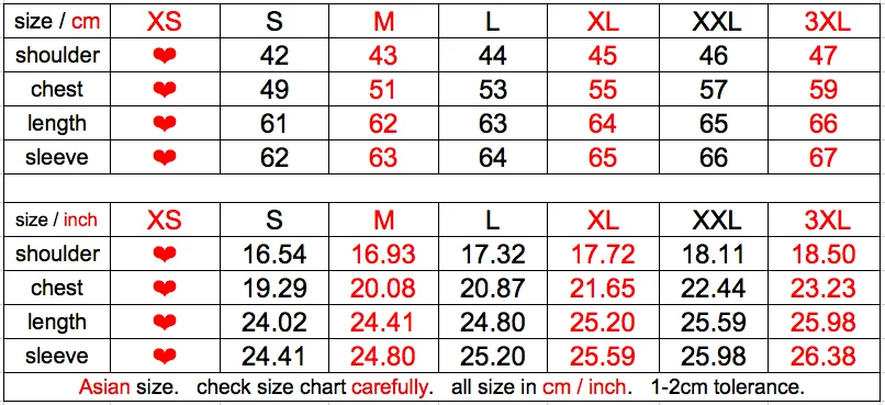 Пожалуйста, проверьте таблицу размеров и измерьте вашу куртку, как показано ниже.
