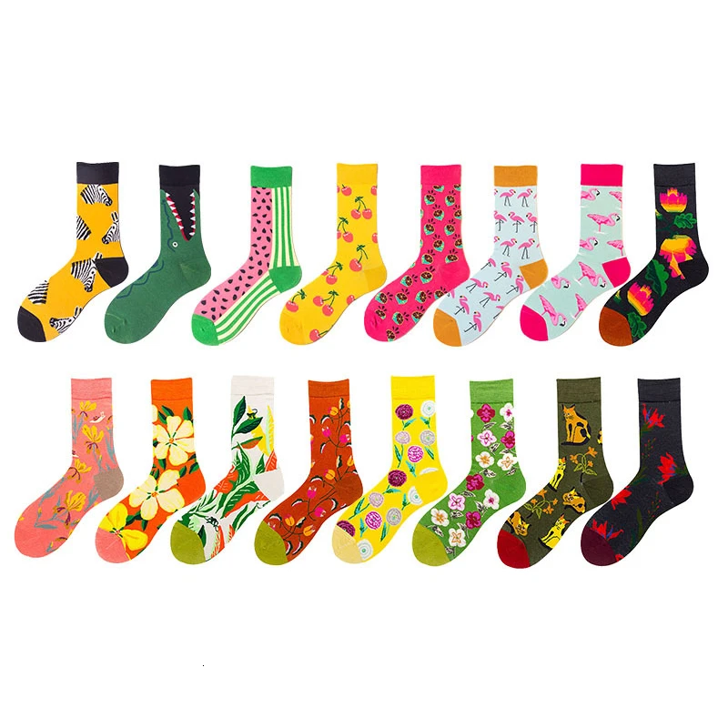 Женские носки с изображением фламинго зебры, растения каваи, забавные, счастливые, повседневные женские хлопковые чулки, уличная одежда, скейт, Harajuku