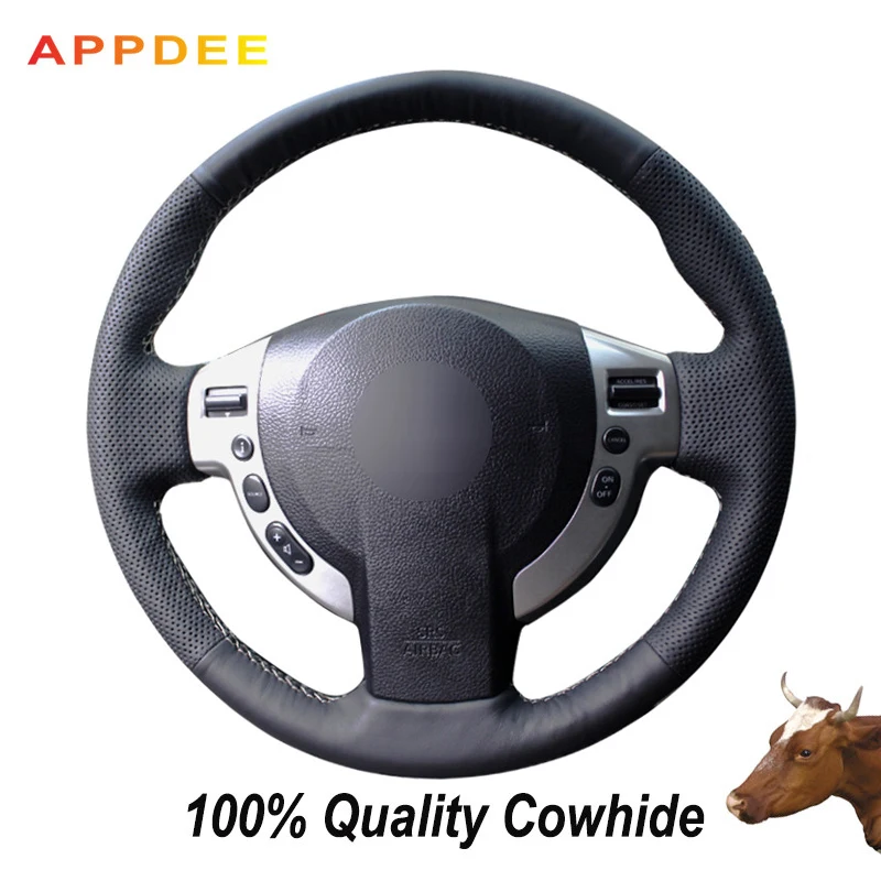 APPDEE черный чехол рулевого колеса автомобиля из натуральной кожи для Nissan QASHQAI X-Trail NV200 Rogue