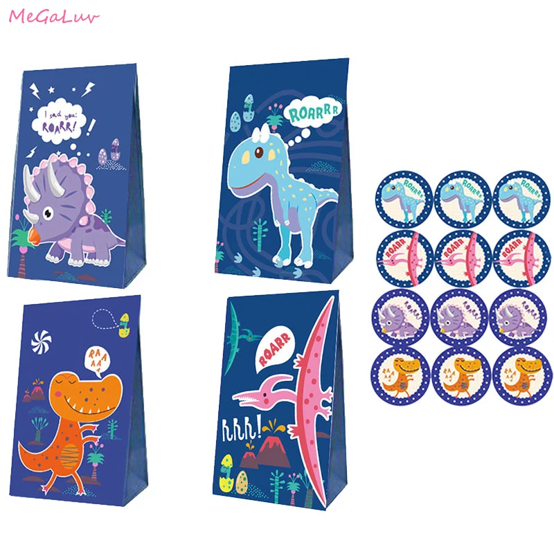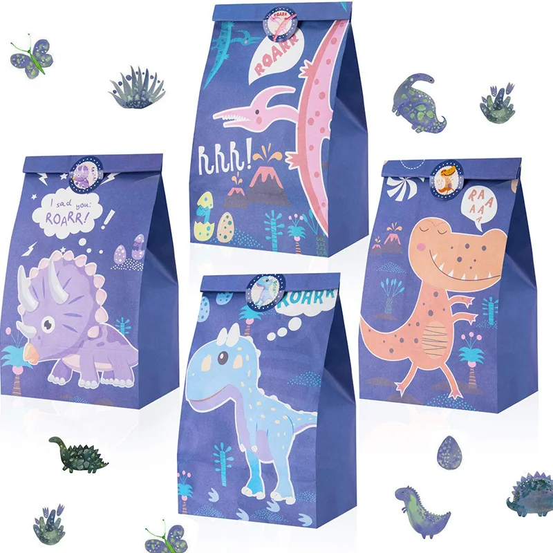 Динозавр коробка для конфет с наклейками Дино Бумага Подарочная конфетная сумка с изображением животных из джунглей подарки для тематической вечеринки на день рождения для детей Baby Shower Свадебные украшения