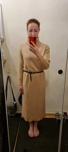 Платье очень качественное, брала L на параметры 98/77/104,рост 170, село хорошо, попу чуть обтягивает, но некритично, до середины икры. может и растянется. цвет чуть светлее, чем на фото, но мне понравился, красивый. Теплое очень, сшито аккуратно! Довольна, спасибо!