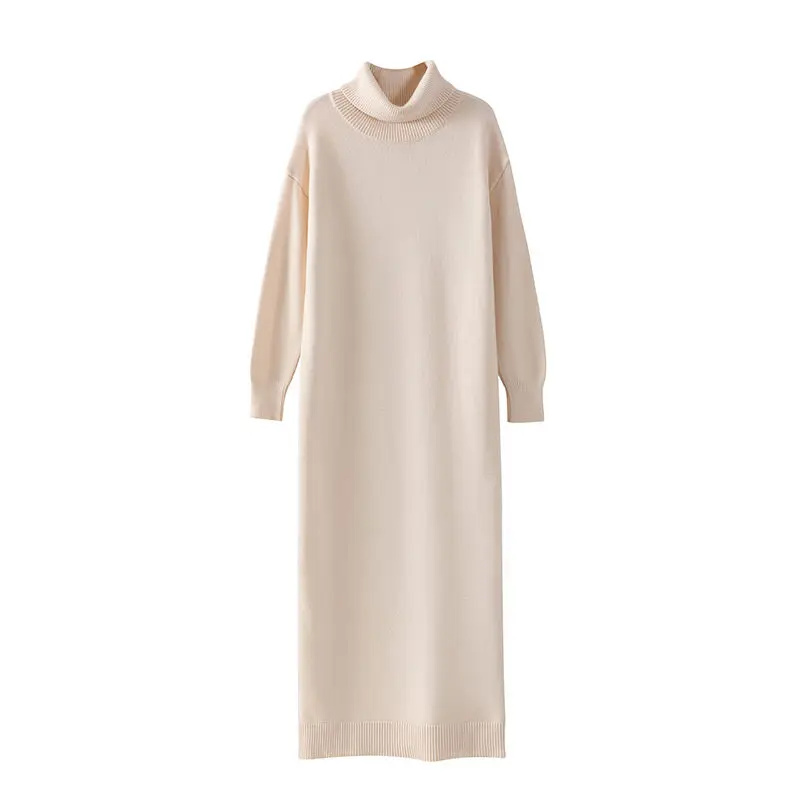 Женское удлиненное трикотажное платье-свитер, с высоким воротом и длинным рукавом, плотная рубашка, f2618