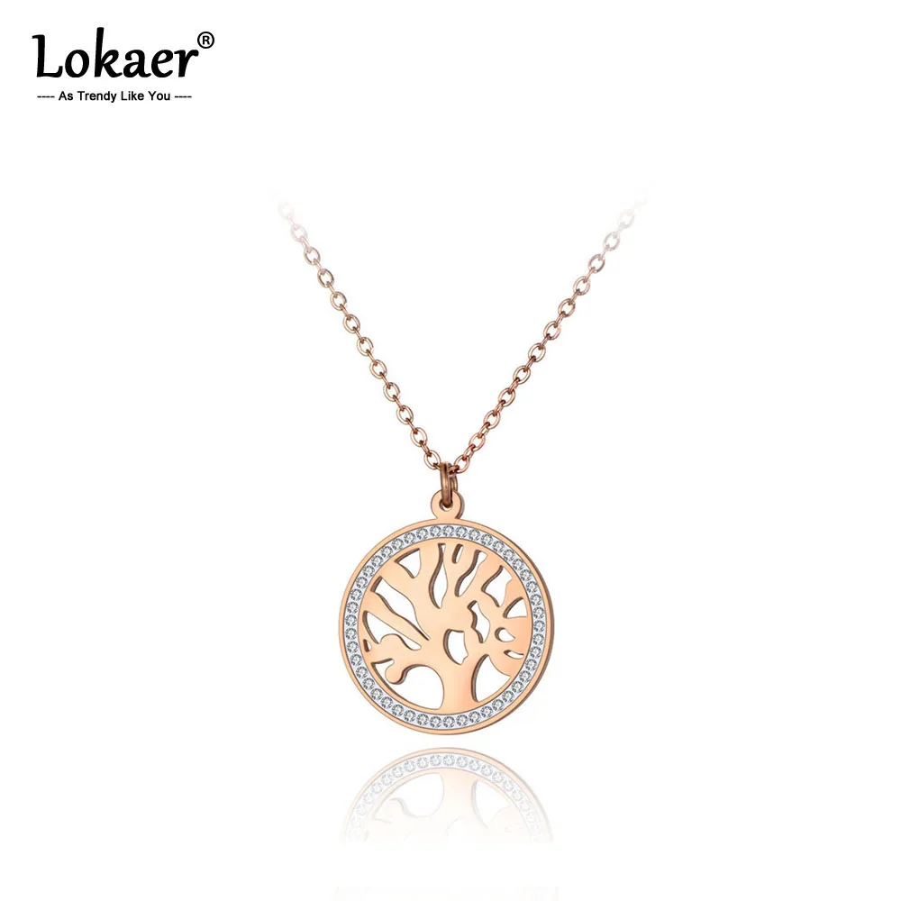 Женское колье-чокер Lokaer, из нержавеющей стали и титана, с кубическим цирконием, с подвеской в виде дерева, N19193