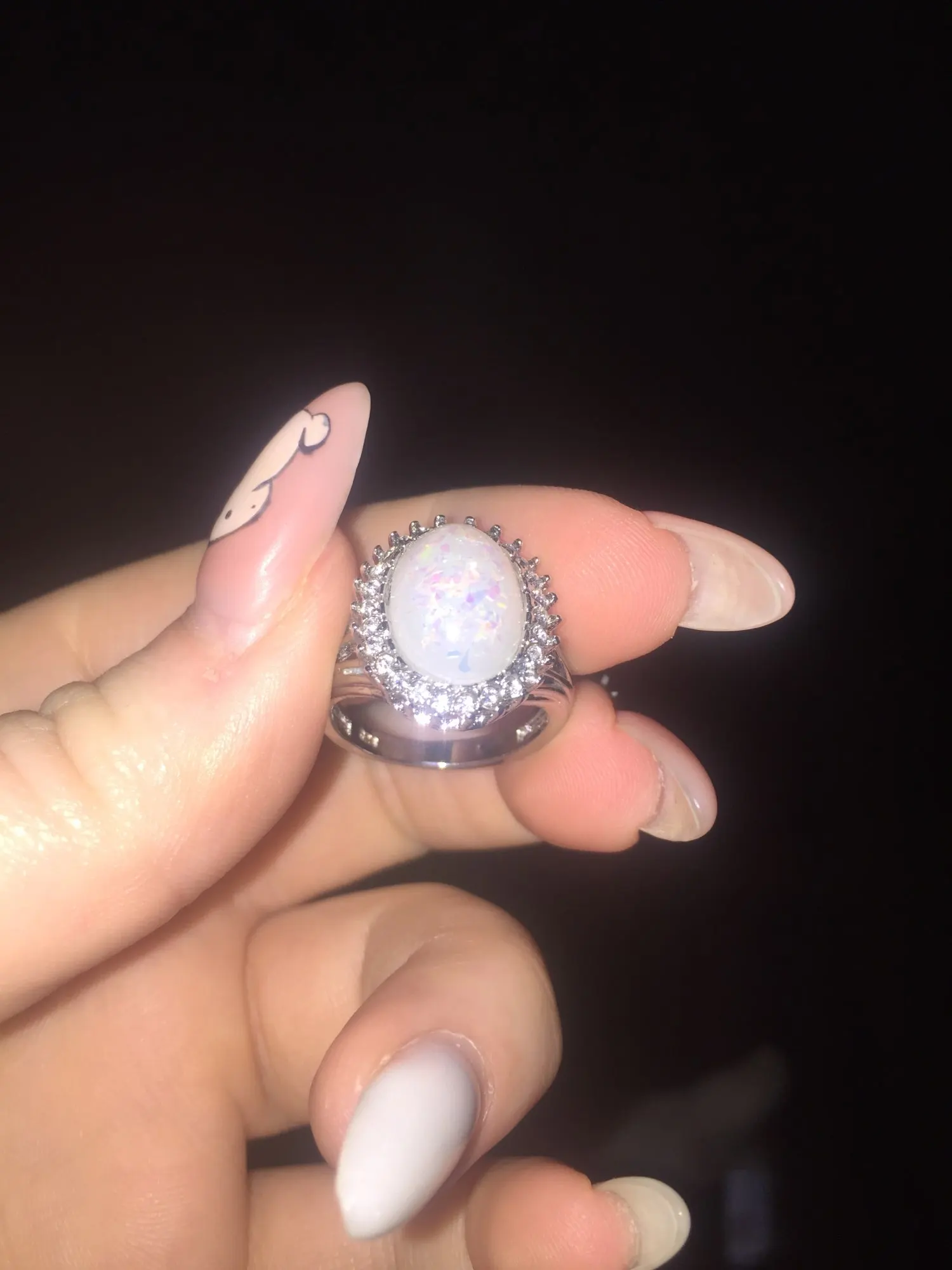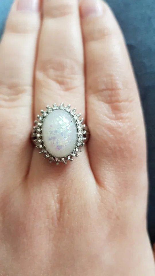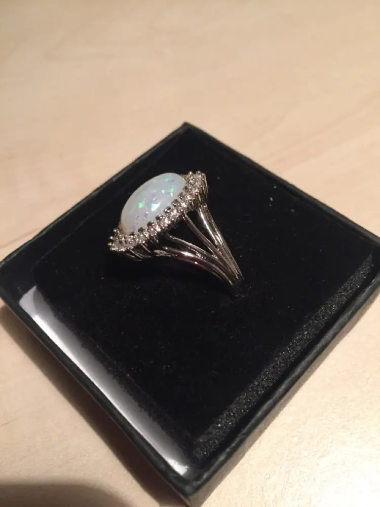 Обратите внимание, что кольцо серебристого цвета, а не серебристого цвета! Нет пня 925! Камень даже не искусственно/лабораторный опал это просто пластик/смола с блестками. Я очень разочарован! Я специально спрашивал продавца о подлинности opal b4, я разместил свой заказ, и он либо солгал мне, либо не знаю, что продает. Для меня это бесполезная бижутерия (не серебро, не натуральный камень); Однако красивый дизайн кольца.