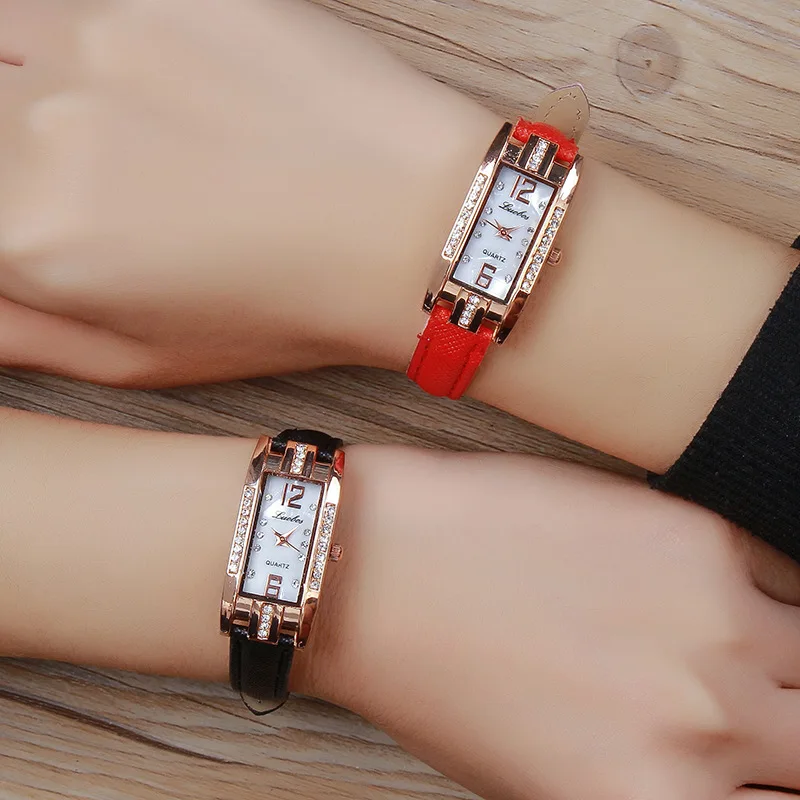Модные женские повседневные кварцевые наручные часы, Дамские кожаные стразы, маленький циферблат, прямоугольные часы, женские Элегантные Простые нарядные часы