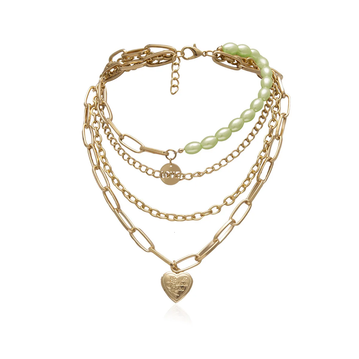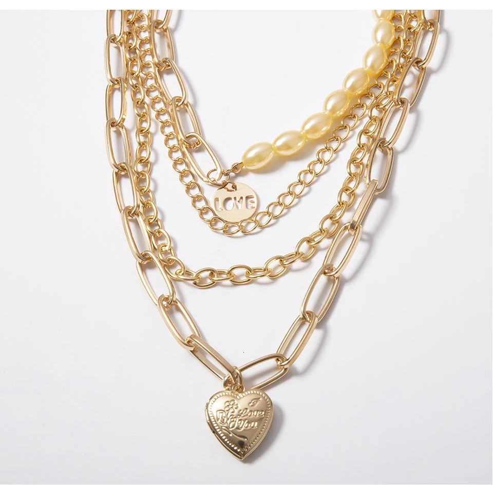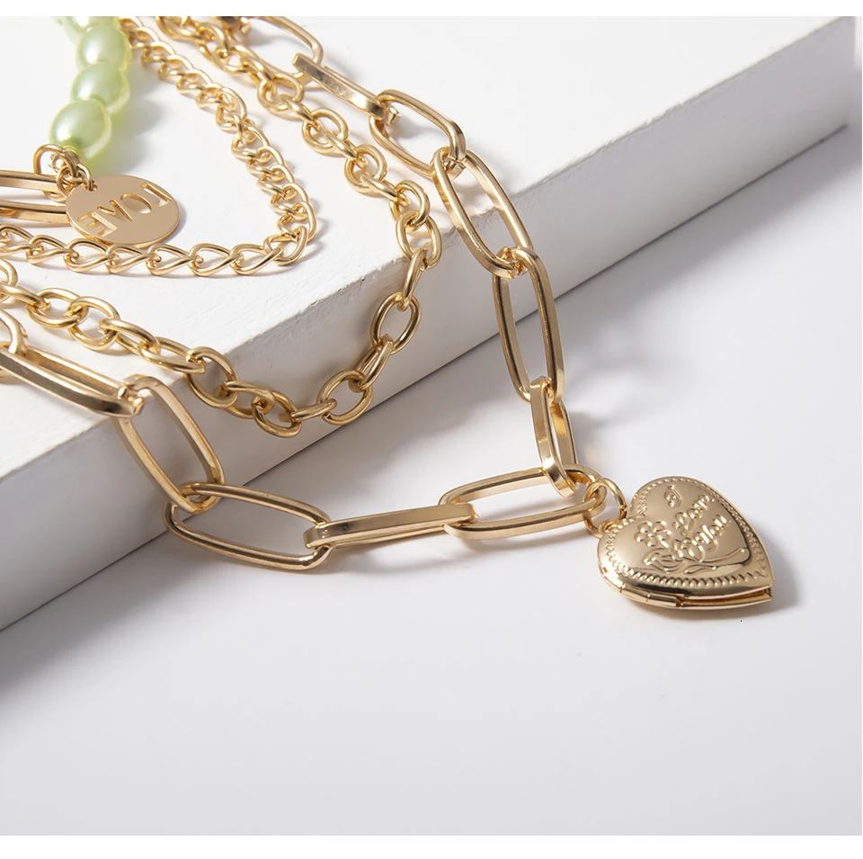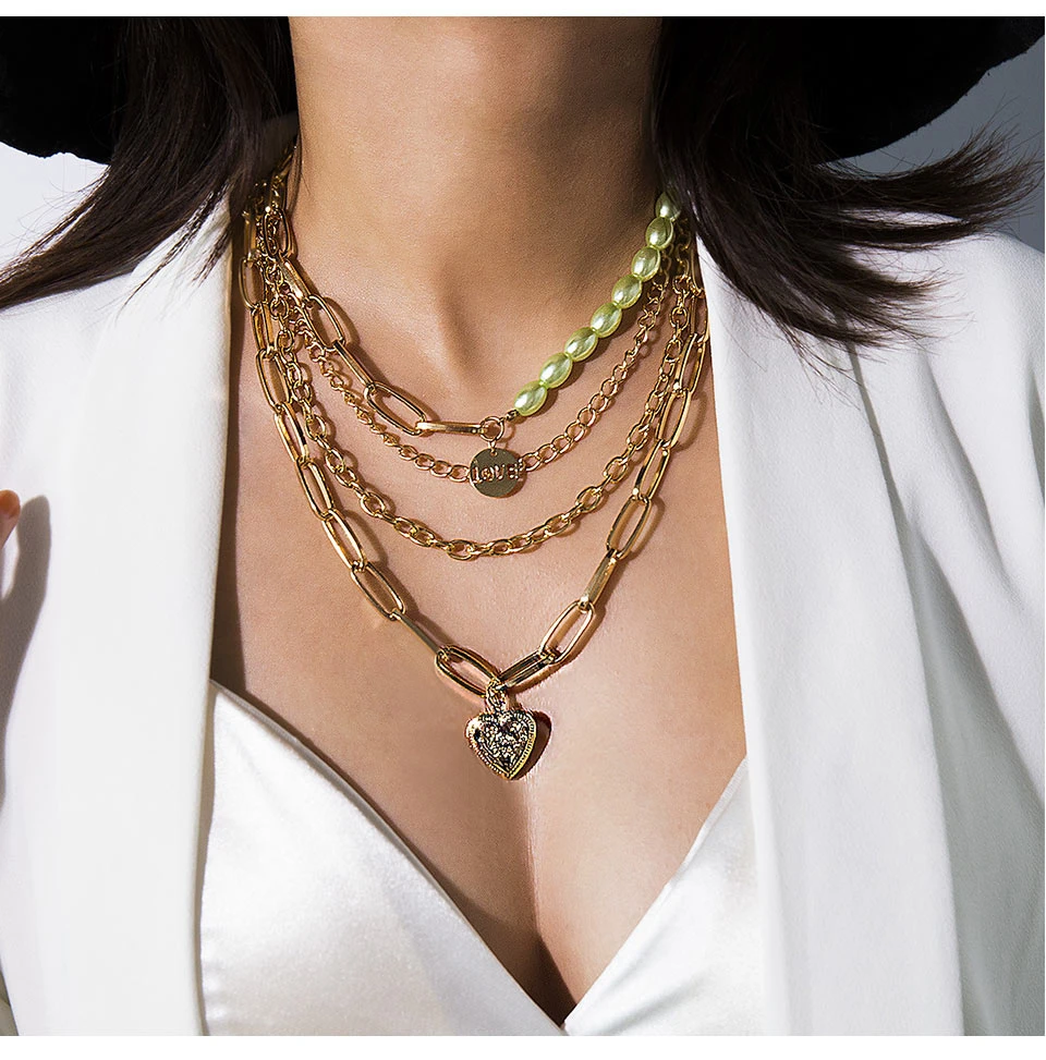 Youvanic модное ожерелье с кулоном в виде сердца для женщин, панк, многослойное жемчужное колье, Золотая кубинская толстая цепочка, ювелирное изделие, 2591