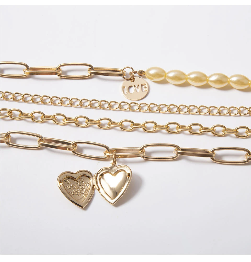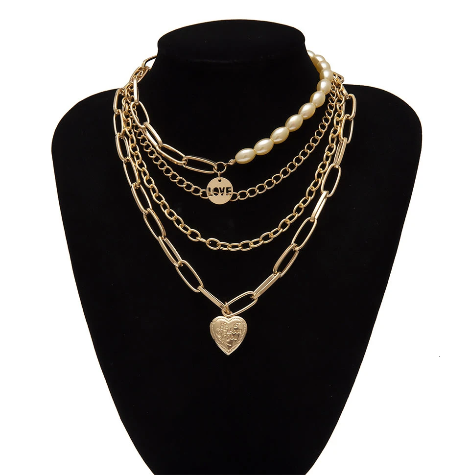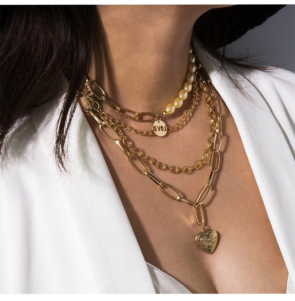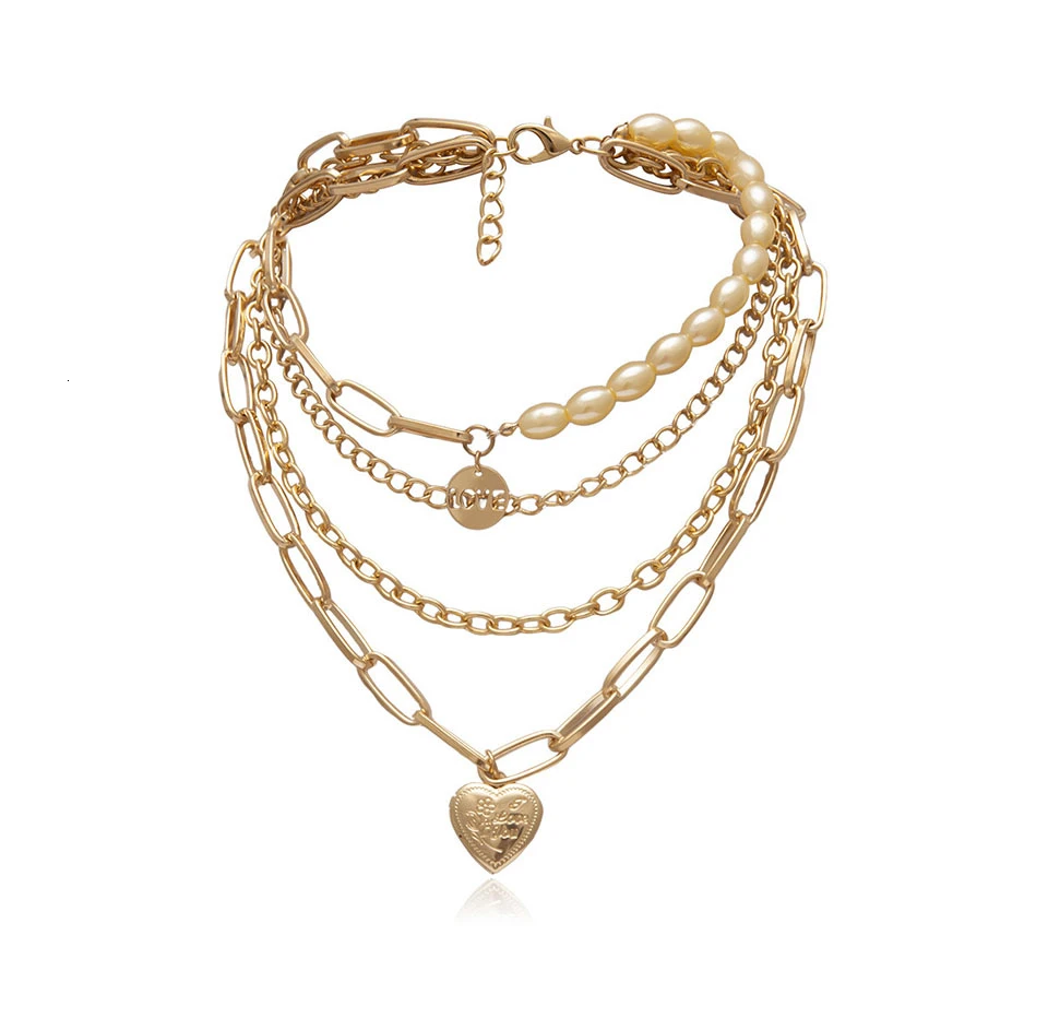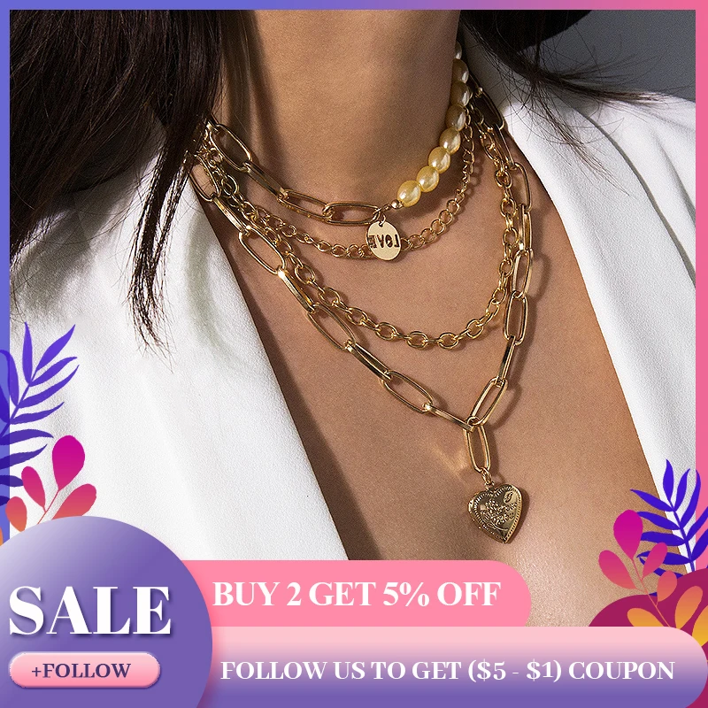 Youvanic модное ожерелье с кулоном в виде сердца для женщин, панк, многослойное жемчужное колье, Золотая кубинская толстая цепочка, ювелирное изделие, 2591