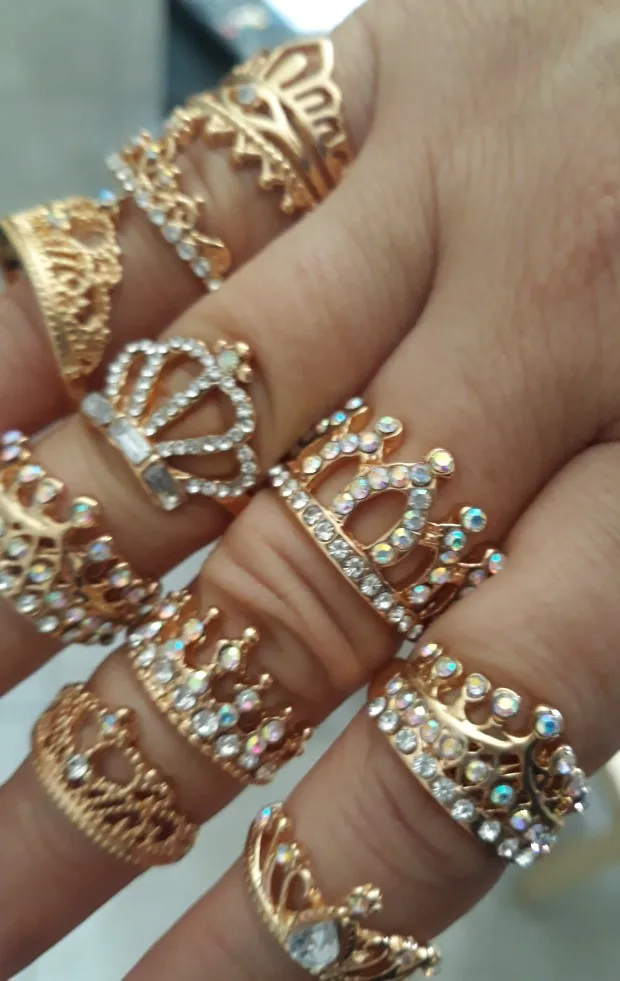 Кольцо женское металлическое в форме короны, 10 шт.лот