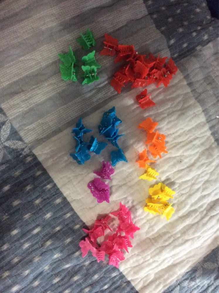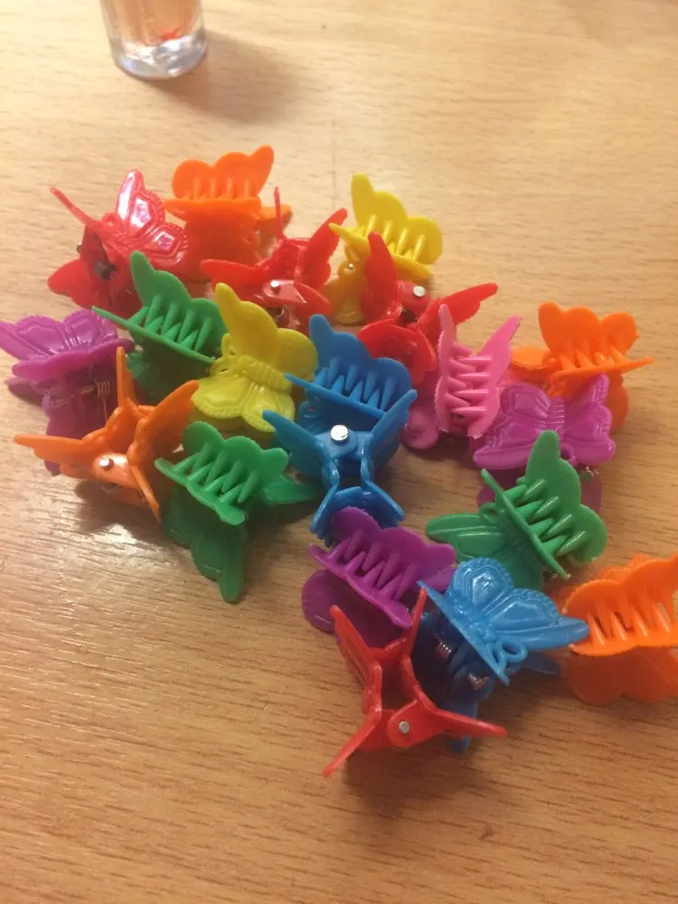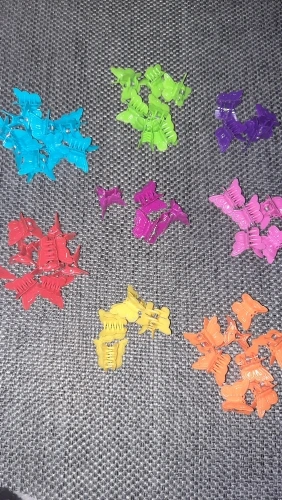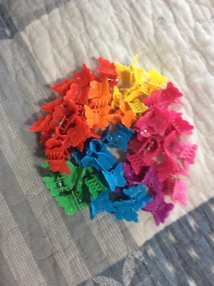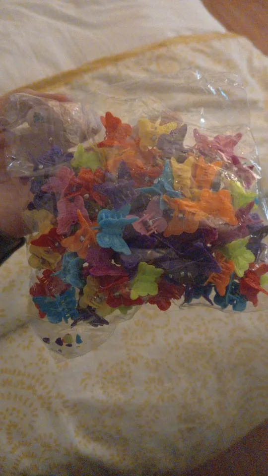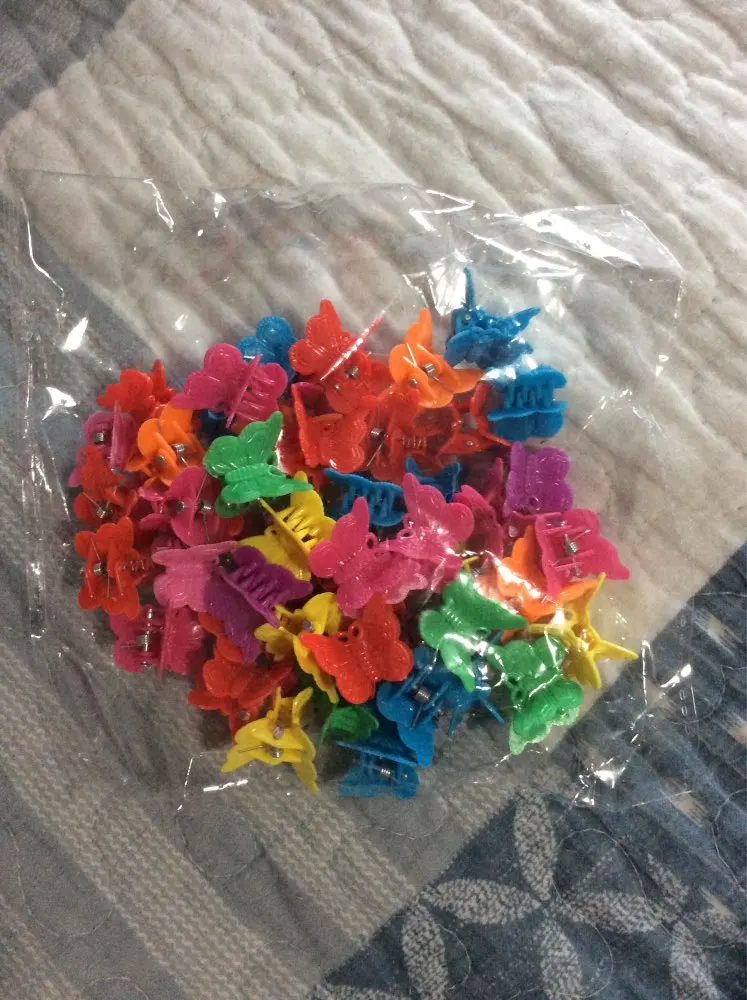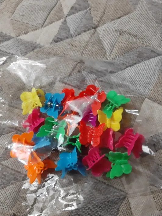 Потрясающе! Я влюблен в клипсы! Их цвет красивый, некоторые сломались, но я не против, потому что у меня все еще много. Мне не нравится только то, что они выбирают цвета случайным образом, потому что у меня есть только 2 синих зажима :)
