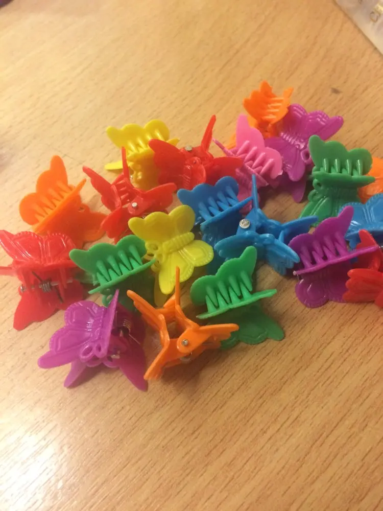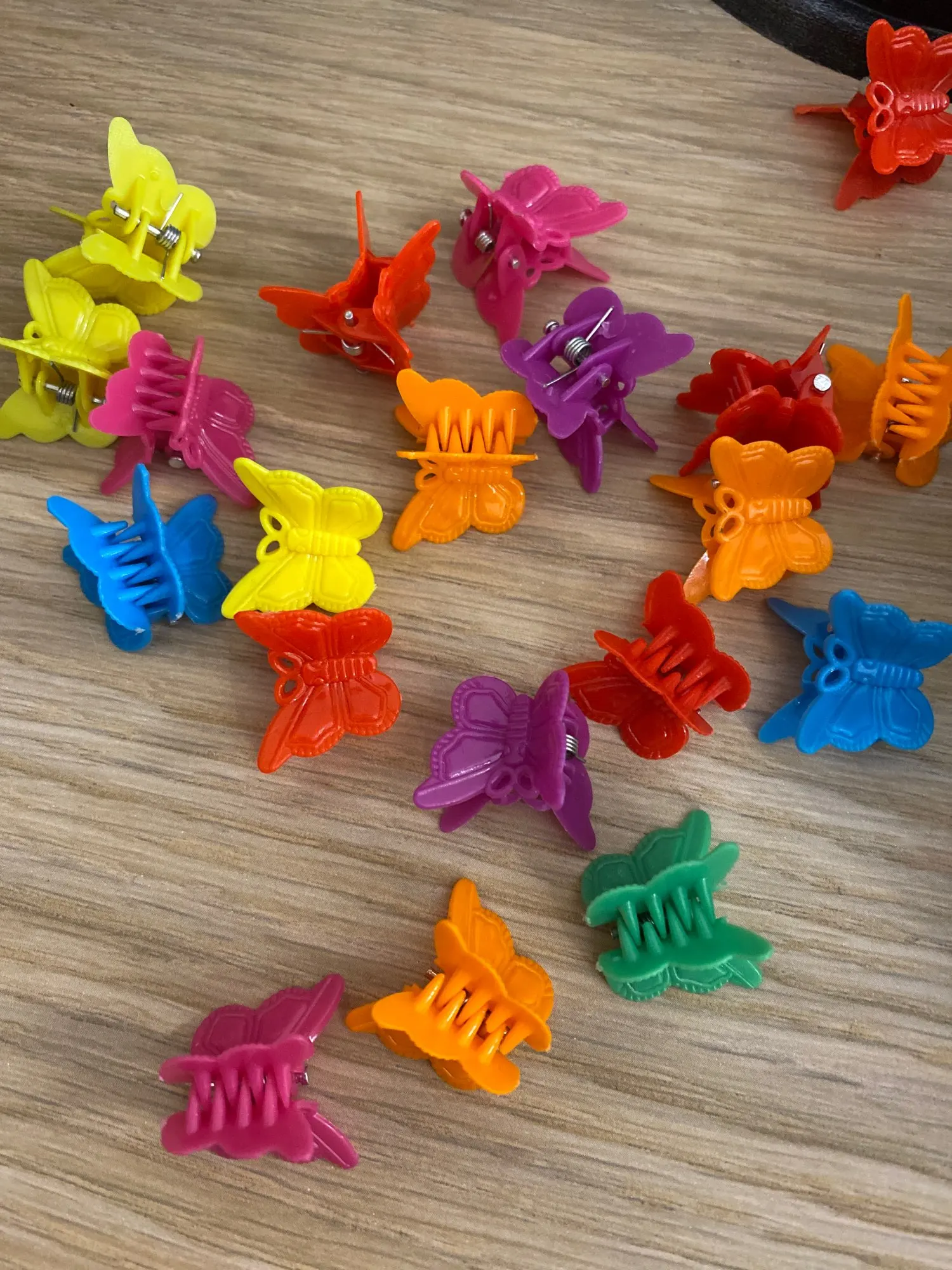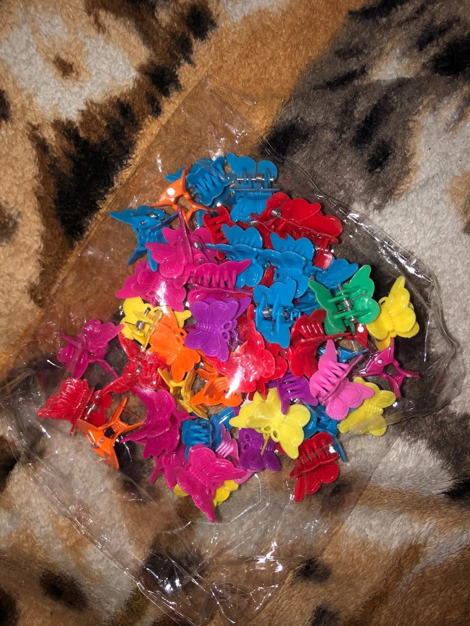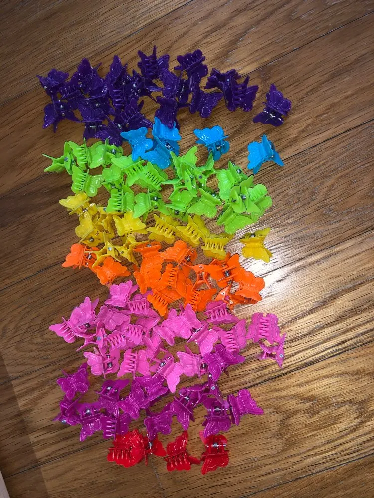 Потрясающе! Я влюблен в клипсы! Их цвет красивый, некоторые сломались, но я не против, потому что у меня все еще много. Мне не нравится только то, что они выбирают цвета случайным образом, потому что у меня есть только 2 синих зажима :)