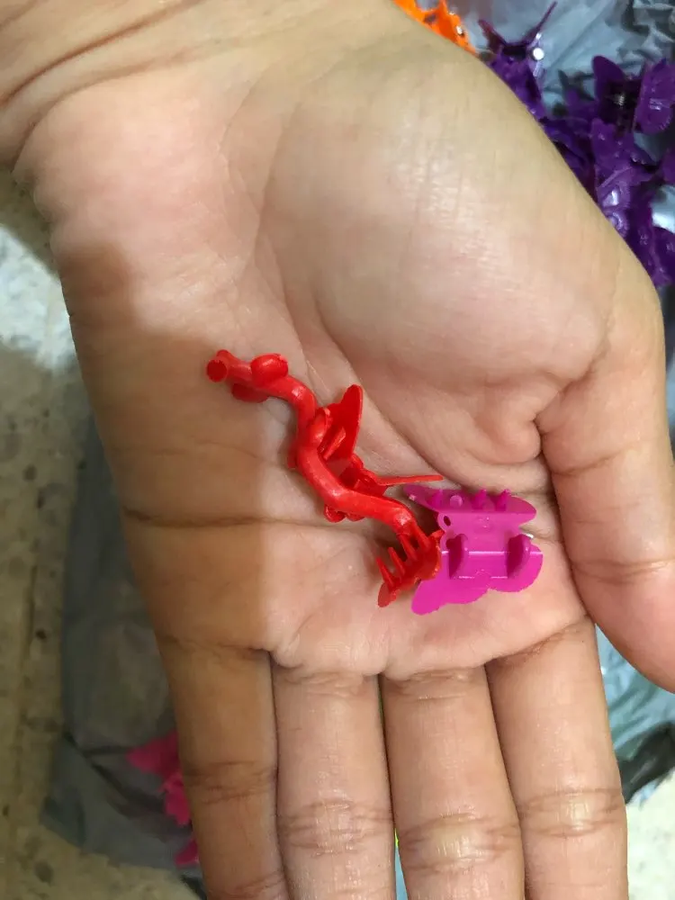 Я не подсчитывал, сколько там точно, но очень много, конечно. Хрупкий пластик, но это ожидалось, хорошо держит тонкие волосы, хорошо как украшение. Хорошо захватывает.