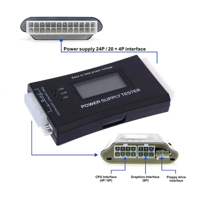 Цифровой тестер источника питания с ЖК-дисплеем, 2024 контактов, тестеры для проверки компьютера с ЖК-дисплеем, измерительные элементы питания для ПК