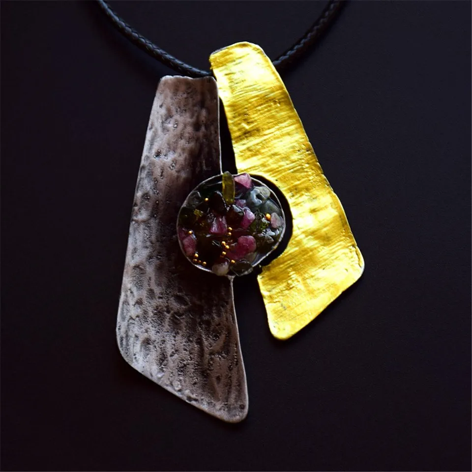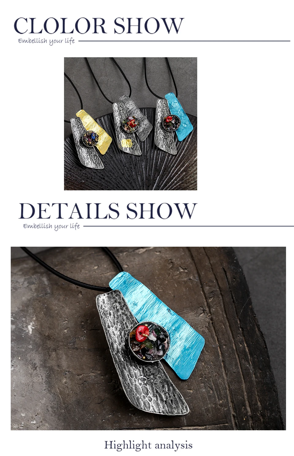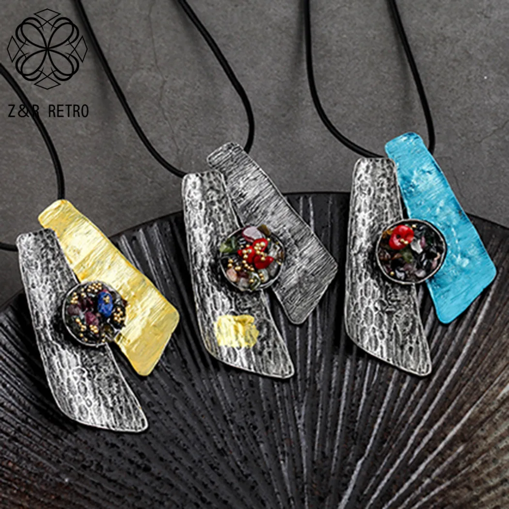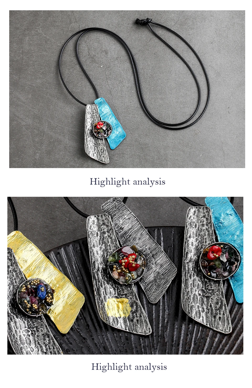Винтажное длинное ожерелье для женщин, ювелирные изделия, подвески из красочного натурального камня, аксессуары для готической цепи, цинковый сплав, оптовая продажа, 2021