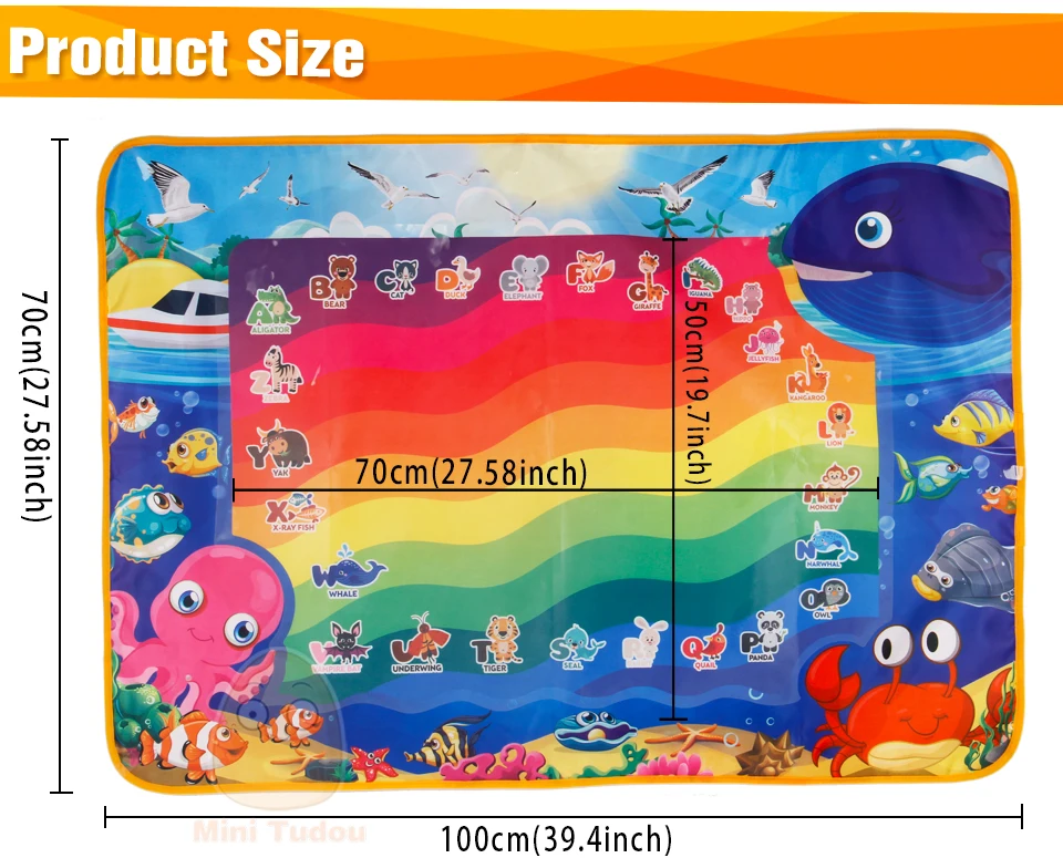 Просто налейте ручку водой, на коврике появится раскраска, которая заставит детей тренировать зрительно-зрительную координацию и способность восприятия цвета. Мини-коврик для рисования Tudou изготовлен из нетоксичных, не загрязняющих веществ, которые безопасны для детей. Есть алфавитные доски и доски для цифр для малышей, чтобы использовать их чтения и письма, Незаметная основа для будущих исследований. Буклет для рисования с наклейкой подходит для детей, чтобы начать путешествие живописи. Превосходный Подарок для ребенка.