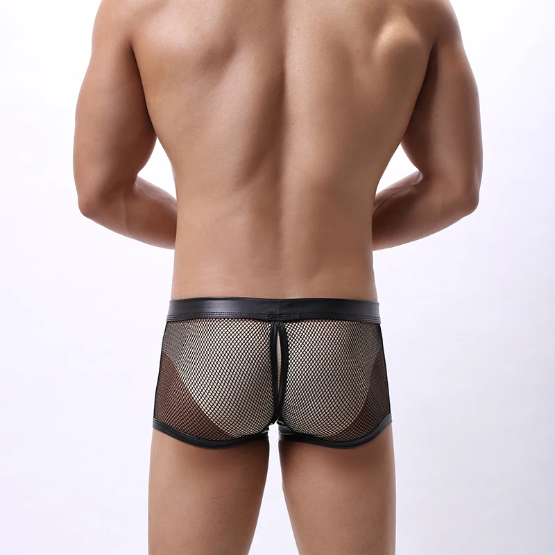 Сексуальное мужское нижнее белье, мужские трусы-боксеры, сетчатые, с открытой ягодицами спереди, с мешочком для пениса, трусы, мужские боксеры, одежда для сна