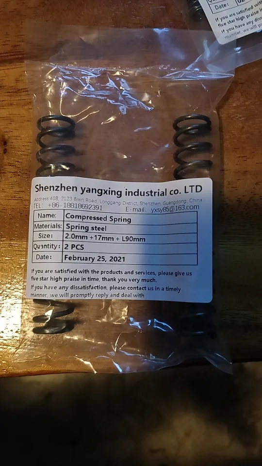 Пружины в порядке, но один из них поставляется с большим количеством ржавчины. Они поставляются в герметичных пакетах, но не смазываются перед транспортировкой. В зависимости от того, что вы хотите сделать с ними, они разрушены по прибытии