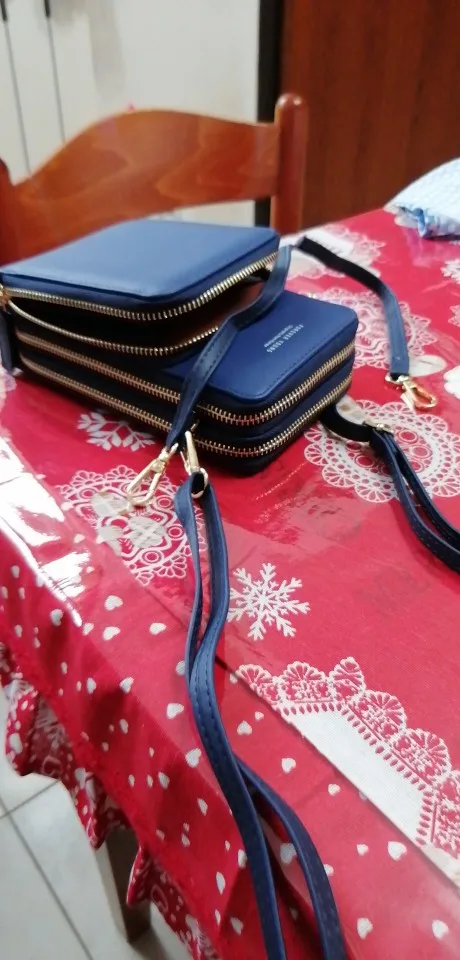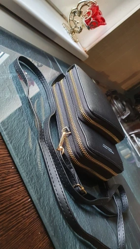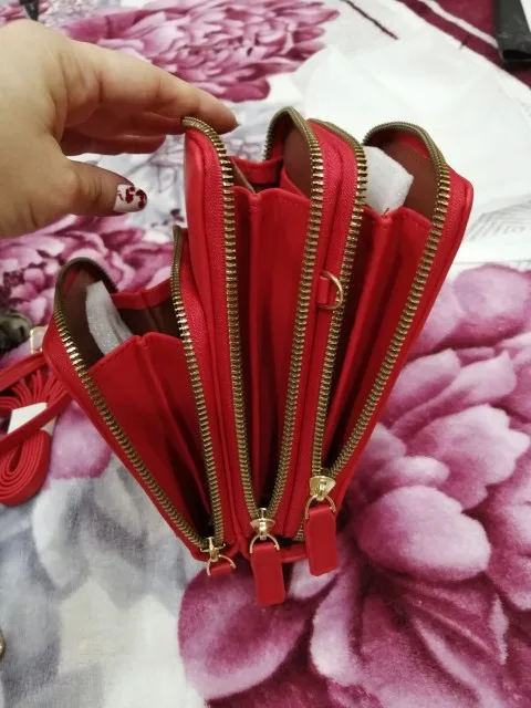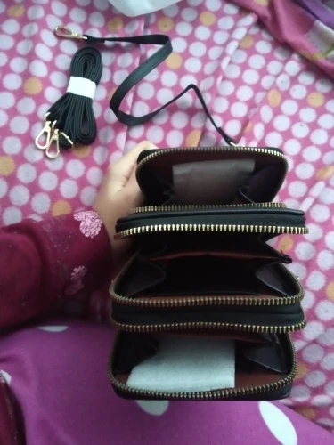 Это очень красиво выглядит качественно, имеет три отсека с застежкой-молнией для мобильного раздела для карт, и даже для того, чтобы положить еще немного, он хорошо упакован с ремешком для флага, а другой короче руки хорошо быстрая доставка товара
