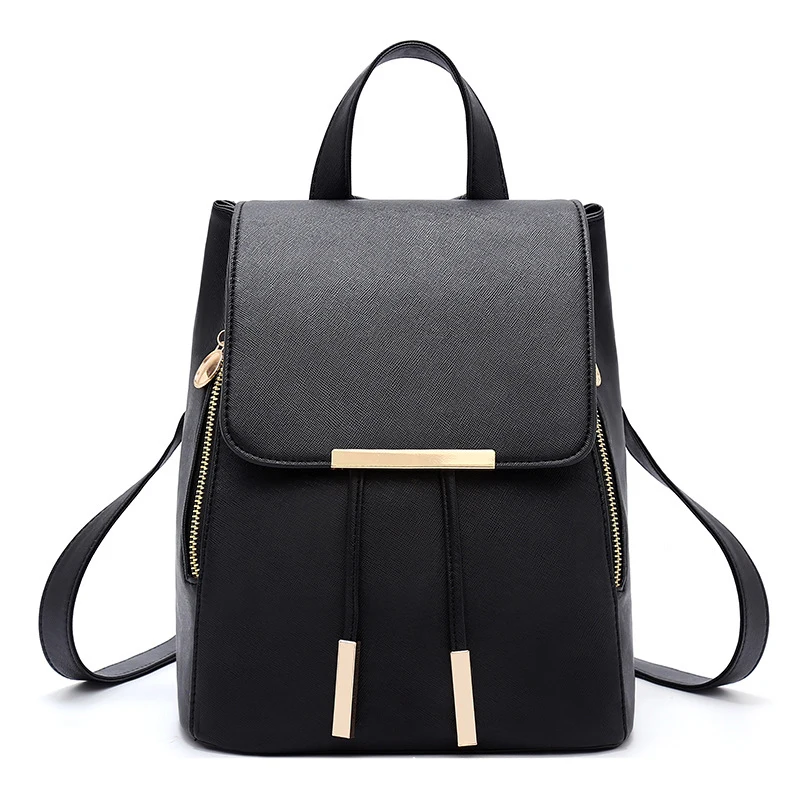 Рюкзак женский из искусственной кожи, черный, школьный, для девочек-подростков