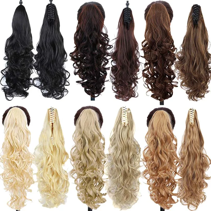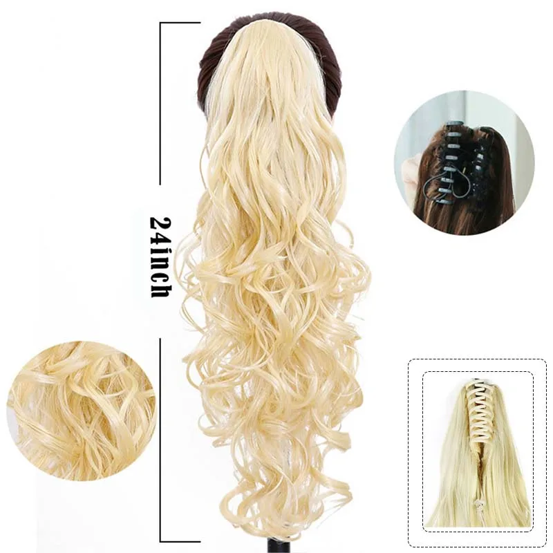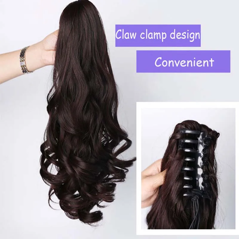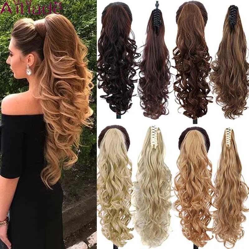 Термостойкие длинные волнистые накладные волосы AILIADE, конский хвост с синтетическими когтями, 24 дюйма, женские шиньоны коричневого цвета