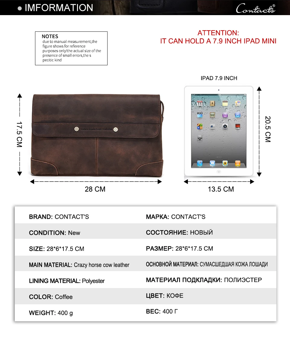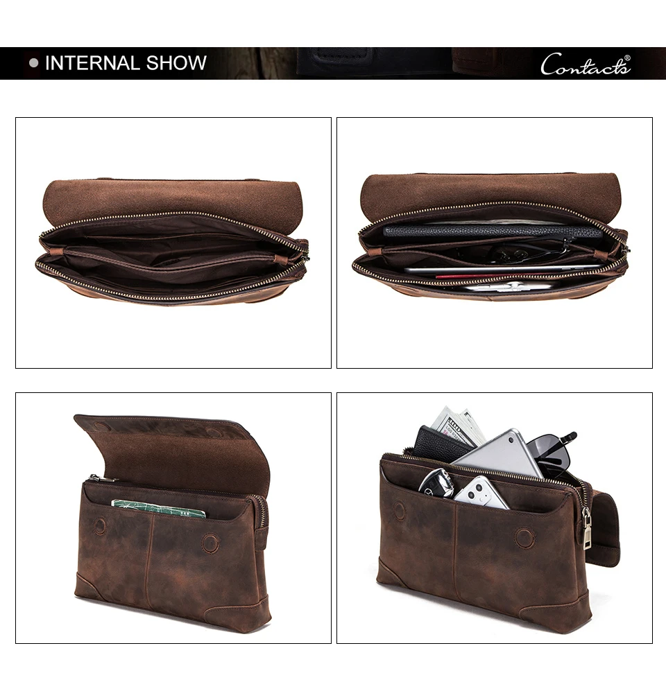 CONTACT'S мужской клатч, большой объем, мужские кошельки, Crazy Horse, кожаный Длинный кошелек, Мужской многофункциональный кошелек, Обложка для паспорта