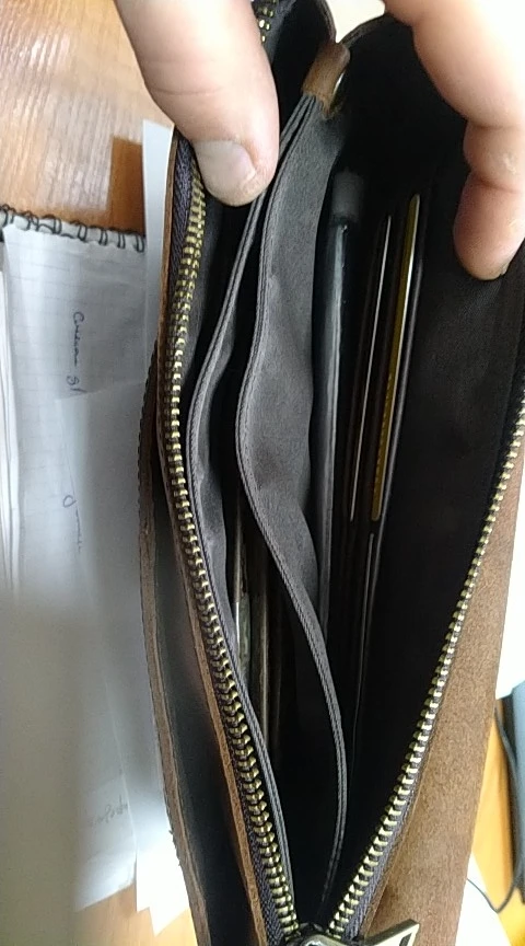Кожа хорошего качества. Очень расстроила молния. Сразуже растегнул и не получается закрыть. Молния очень жёсткая. Смазывай не Смазывай. Какой-то брак. Если открыть сумку до конца. Будешь очень долго мучаться чтобы её закрыть.
