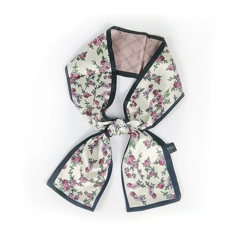 Женский шелковый шарф с цветочным принтом, маленькая сумка на ручке, длинный узкий платок с лентами, женские шарфы